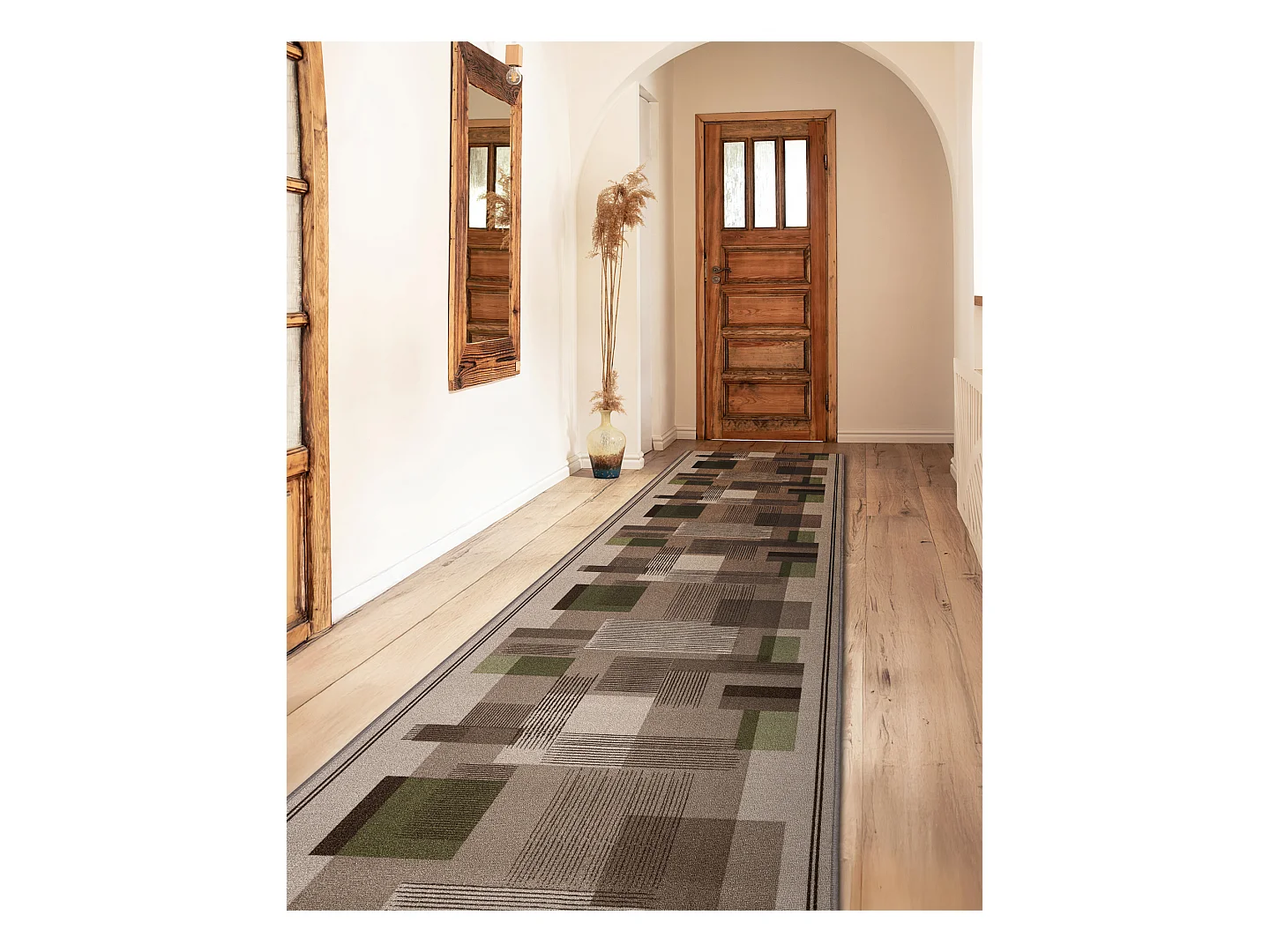 CHODNIK podgumowany LISTRA Geometryczny, antypoślizgowy beż 100cm 100x420 cm