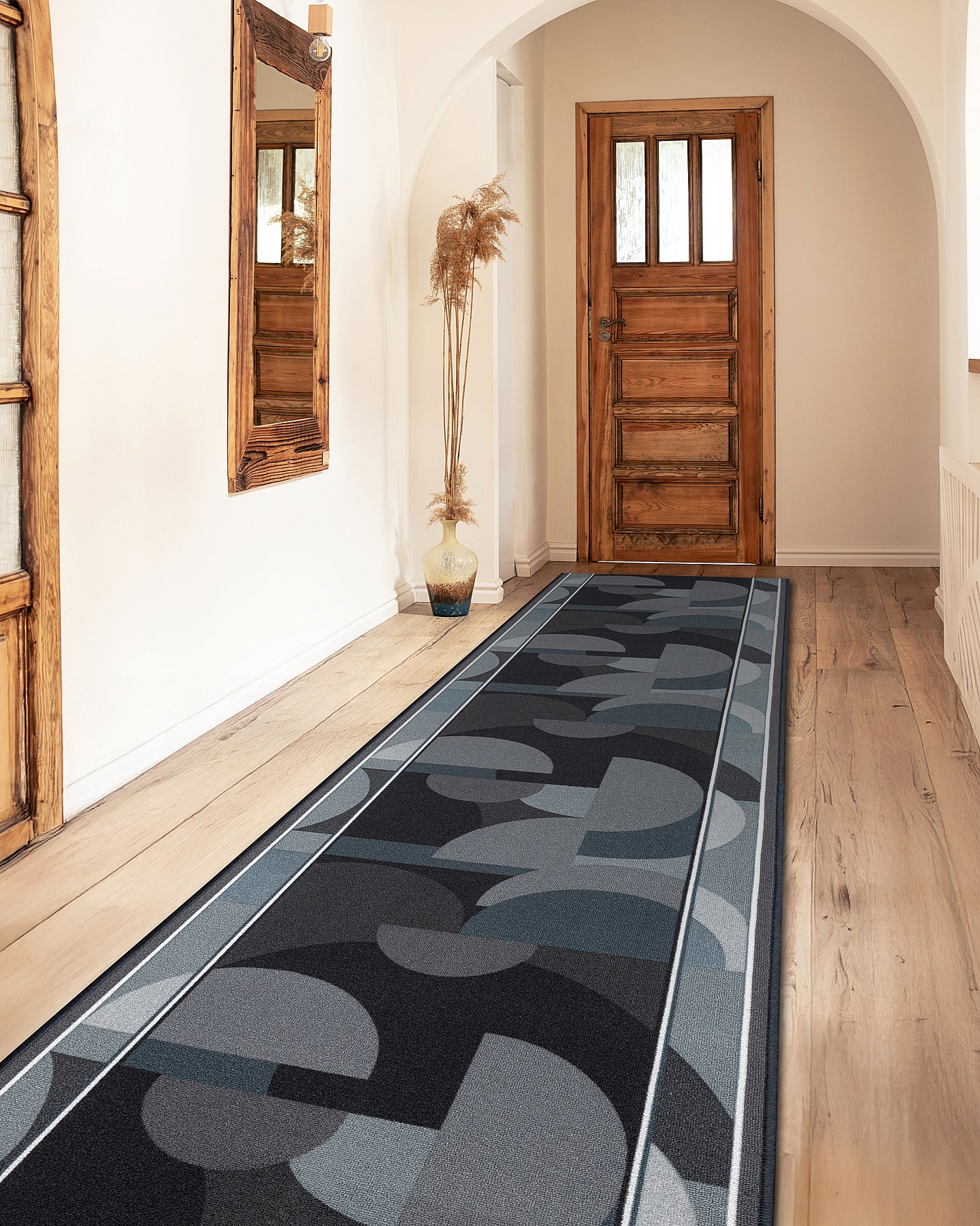 CHODNIK podgumowany MALIS Geometryczny, antypoślizgowy szary 80cm 80x410 cm