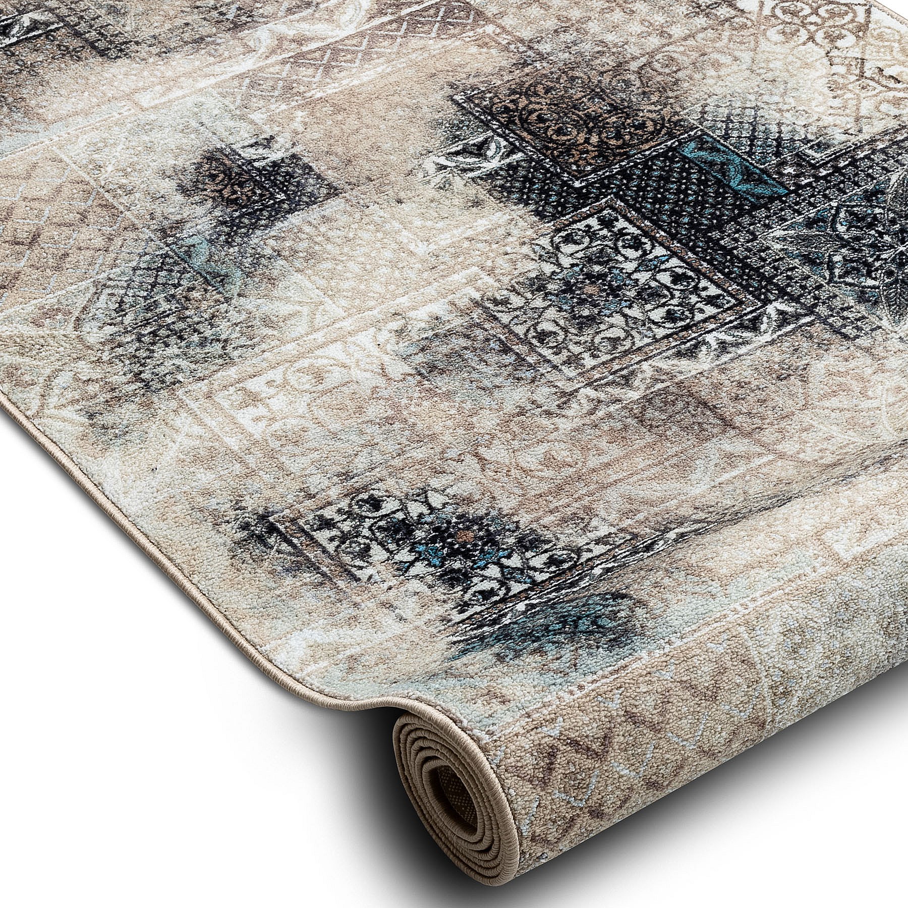 CHODNIK podgumowany PATCHWORK vintage guma beż 67 cm 67x340 cm