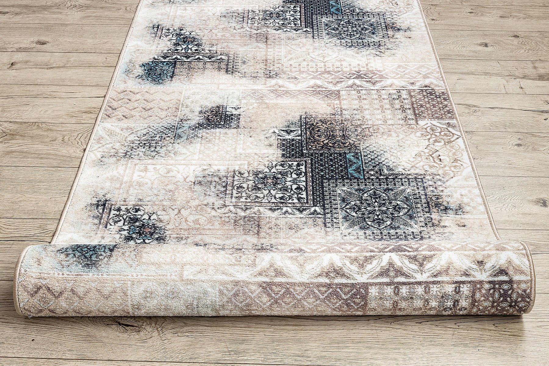 CHODNIK podgumowany PATCHWORK vintage guma beż 67 cm 67x450 cm