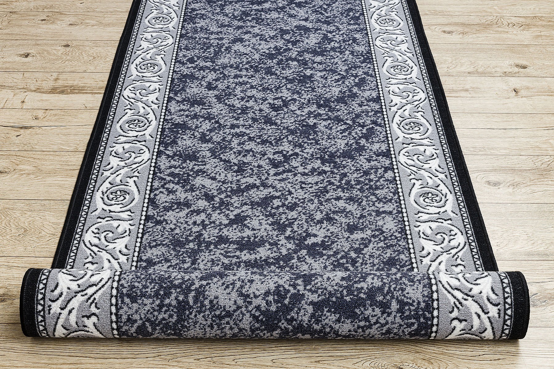 CHODNIK podgumowany ROMANTIC Ornament, antypoślizgowy szary 80 cm 80x670 cm