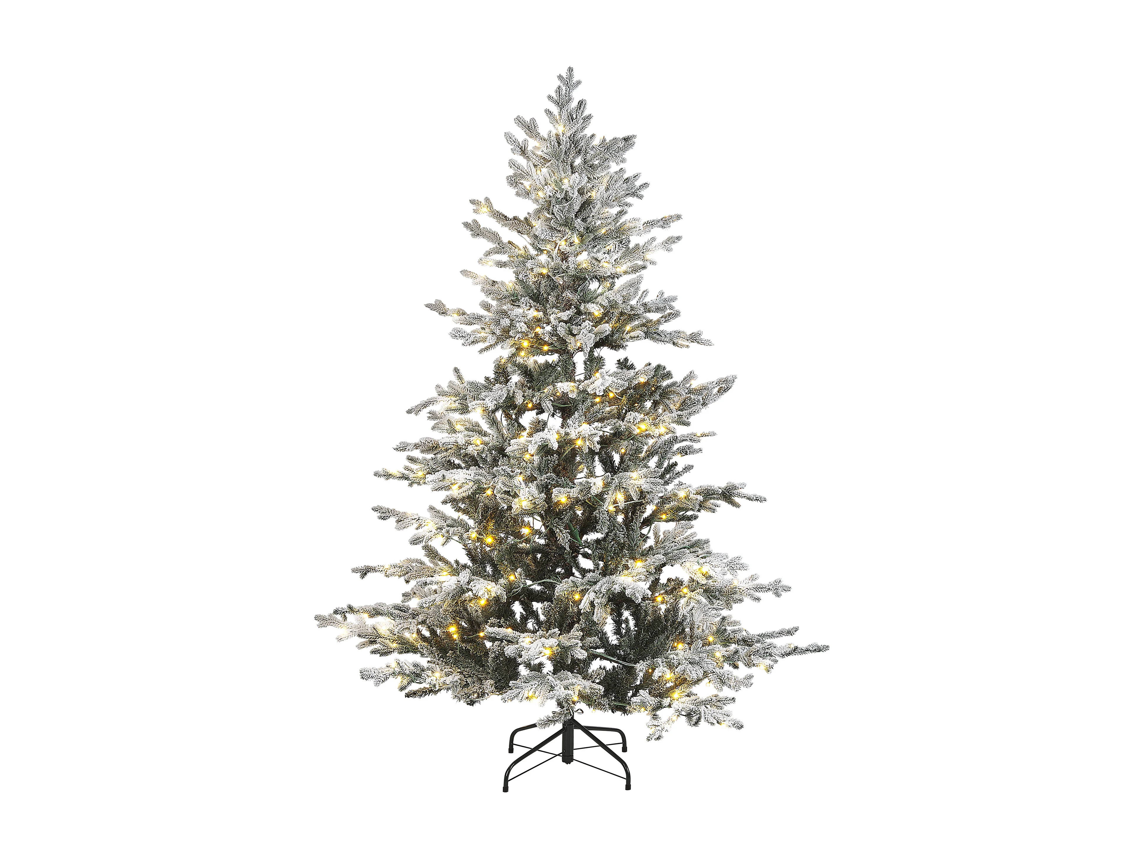 Ośnieżona sztuczna choinka ze światełkami 180 cm biała BRISCO