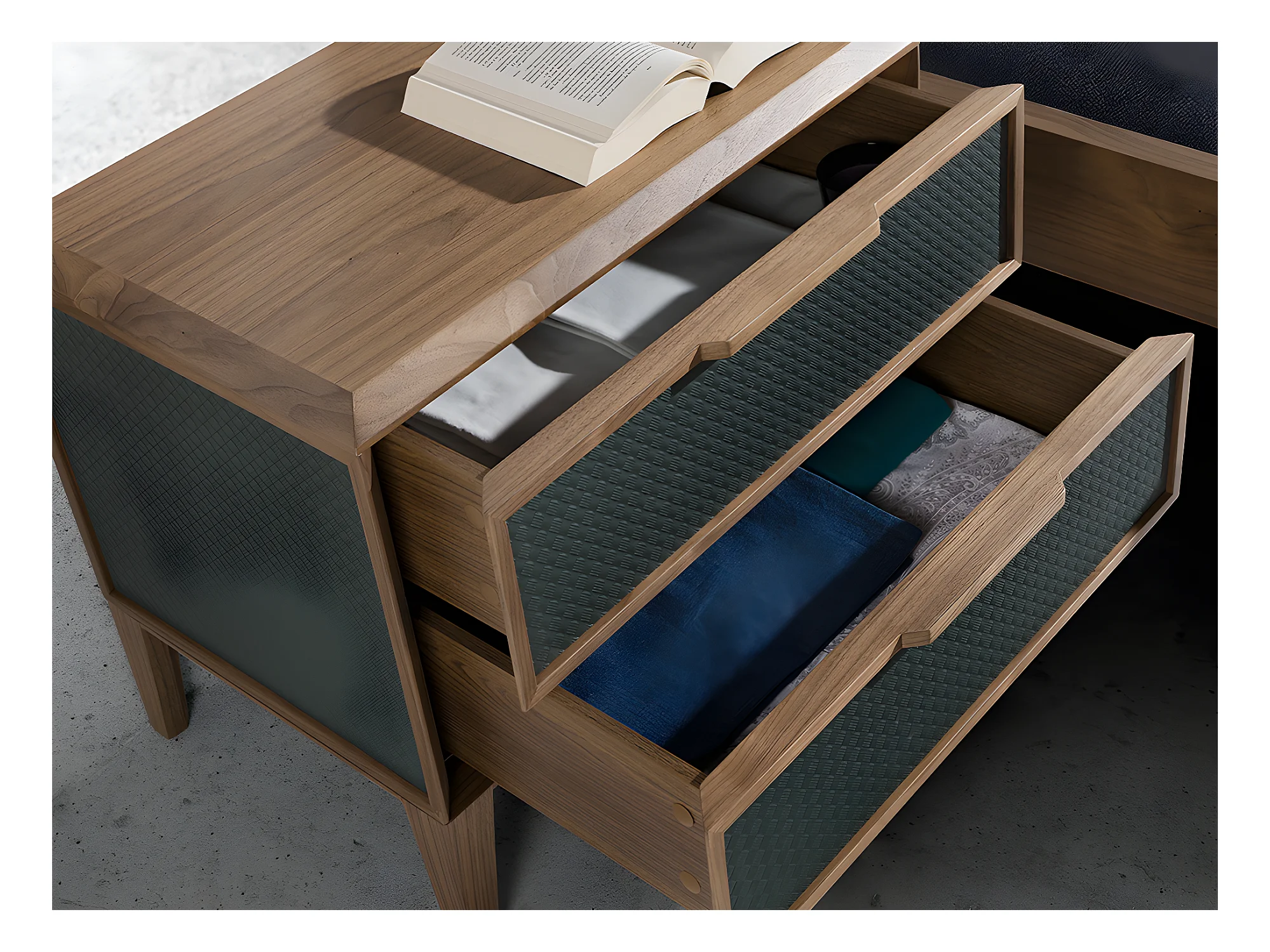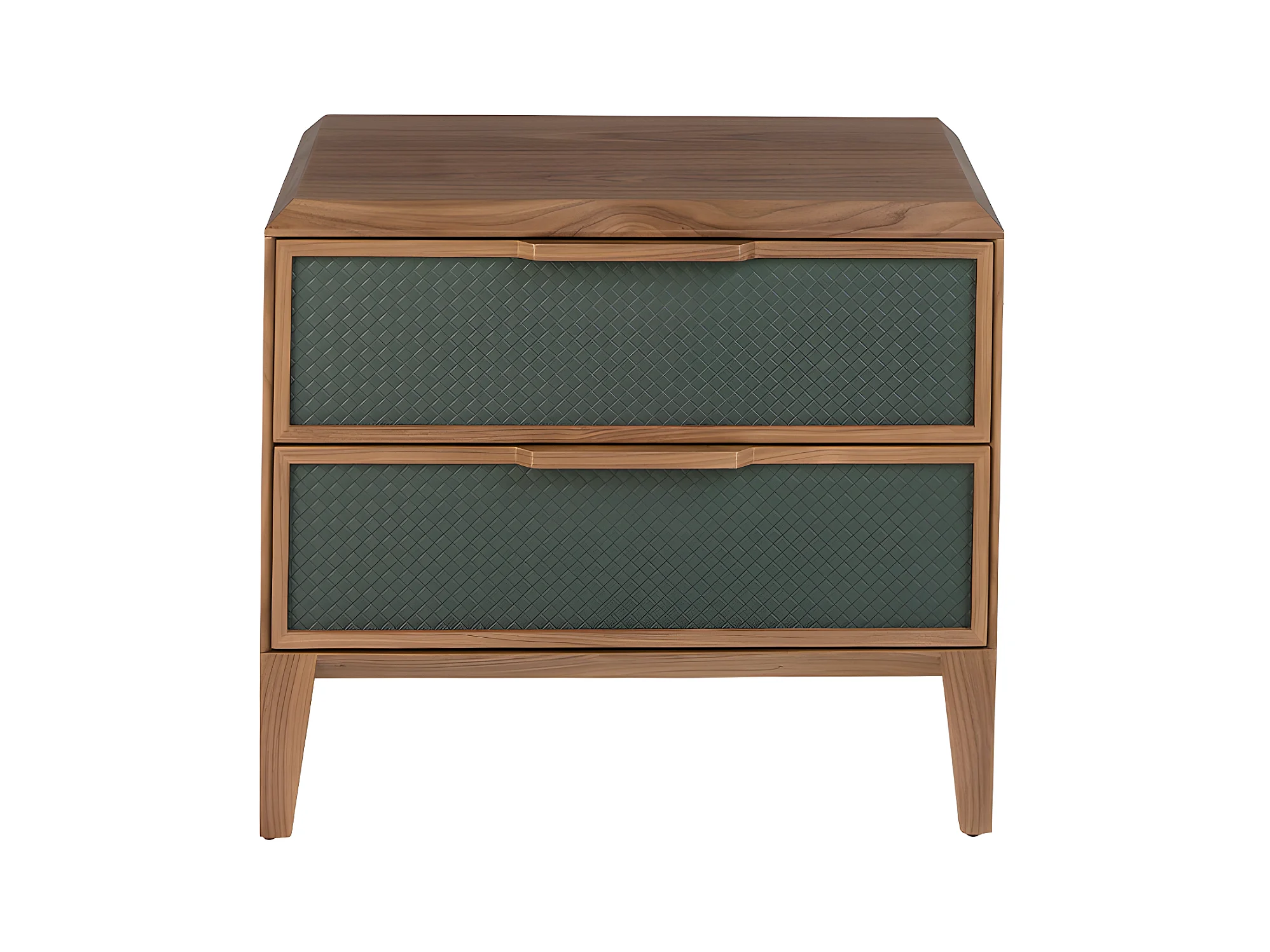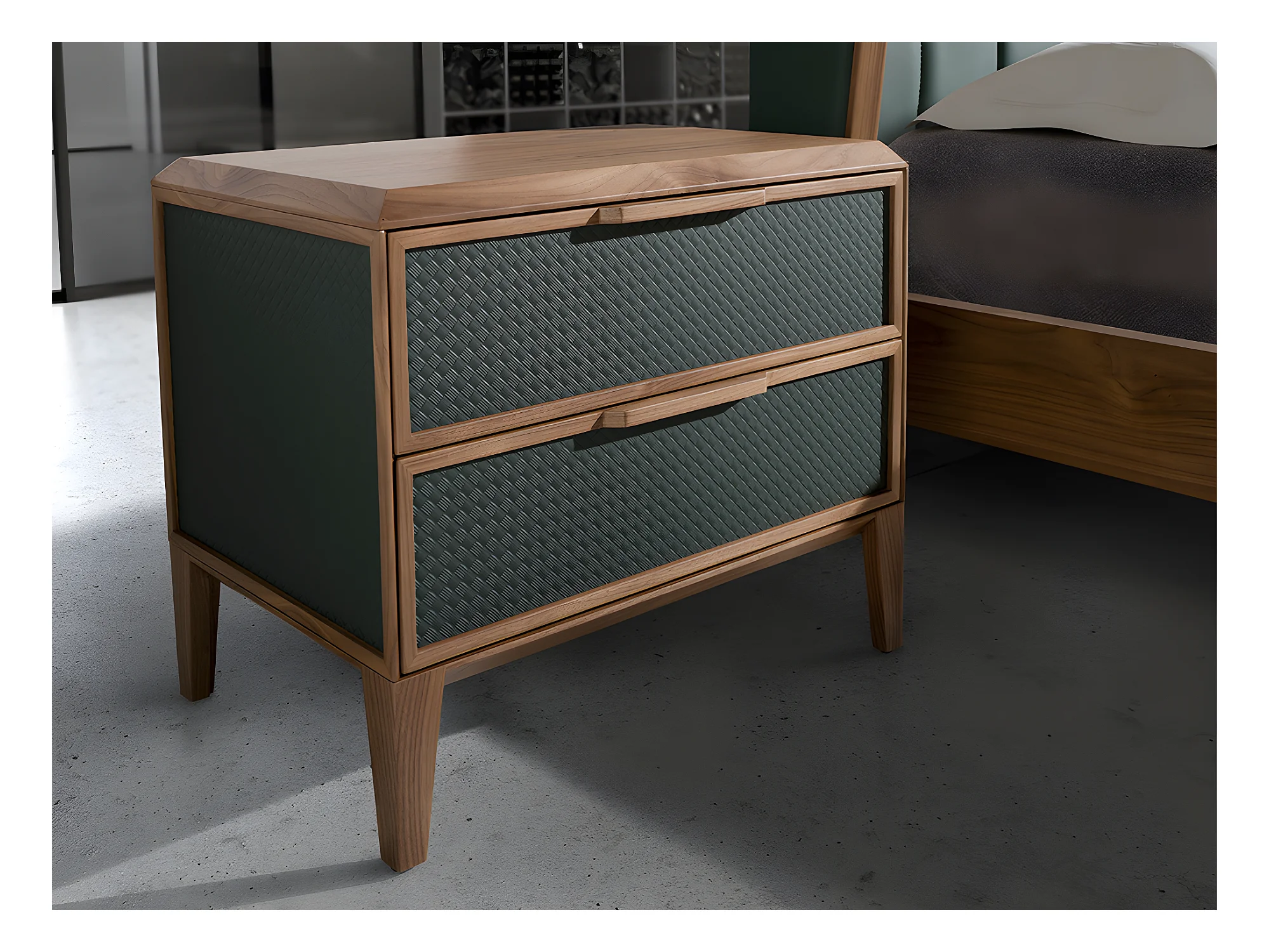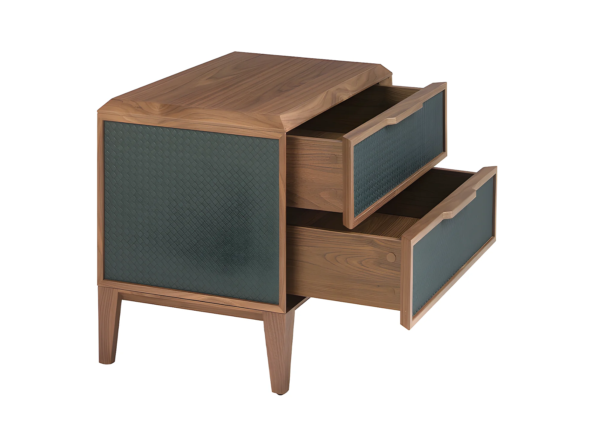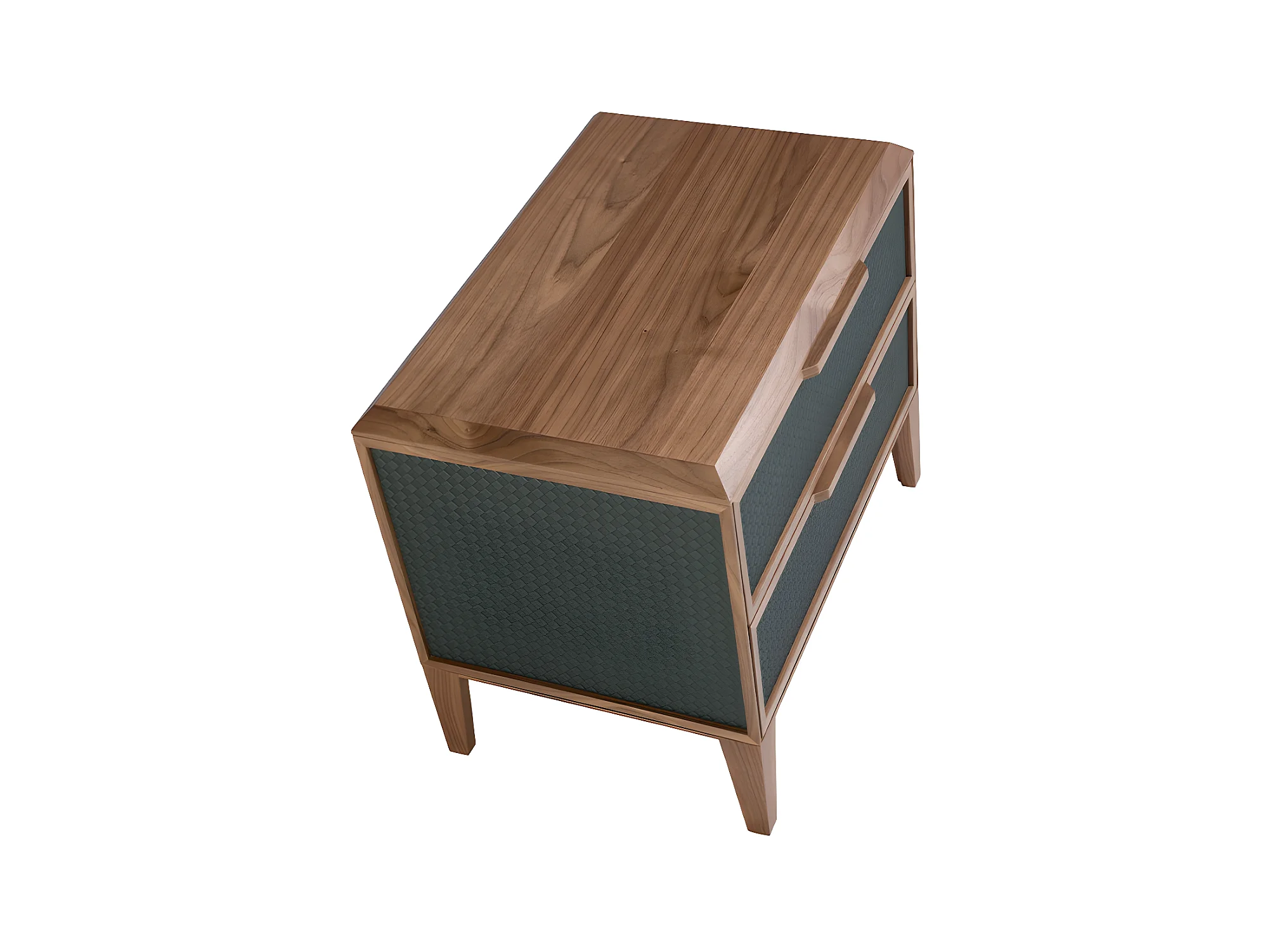 Ciemnozielony stolik nocny z PVC i orzecha włoskiego