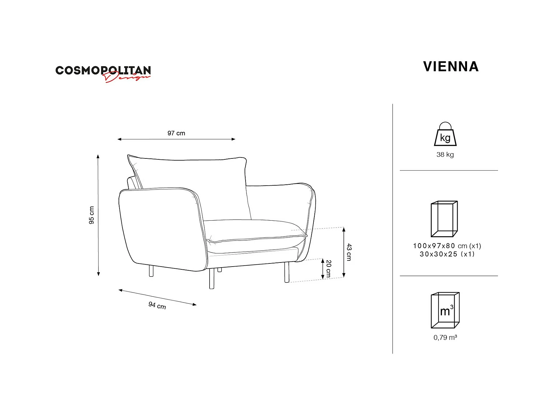 Cosmopolitan Design - Fotel, "Vienna" welur, zielony butelkowy - 97x94x95cm