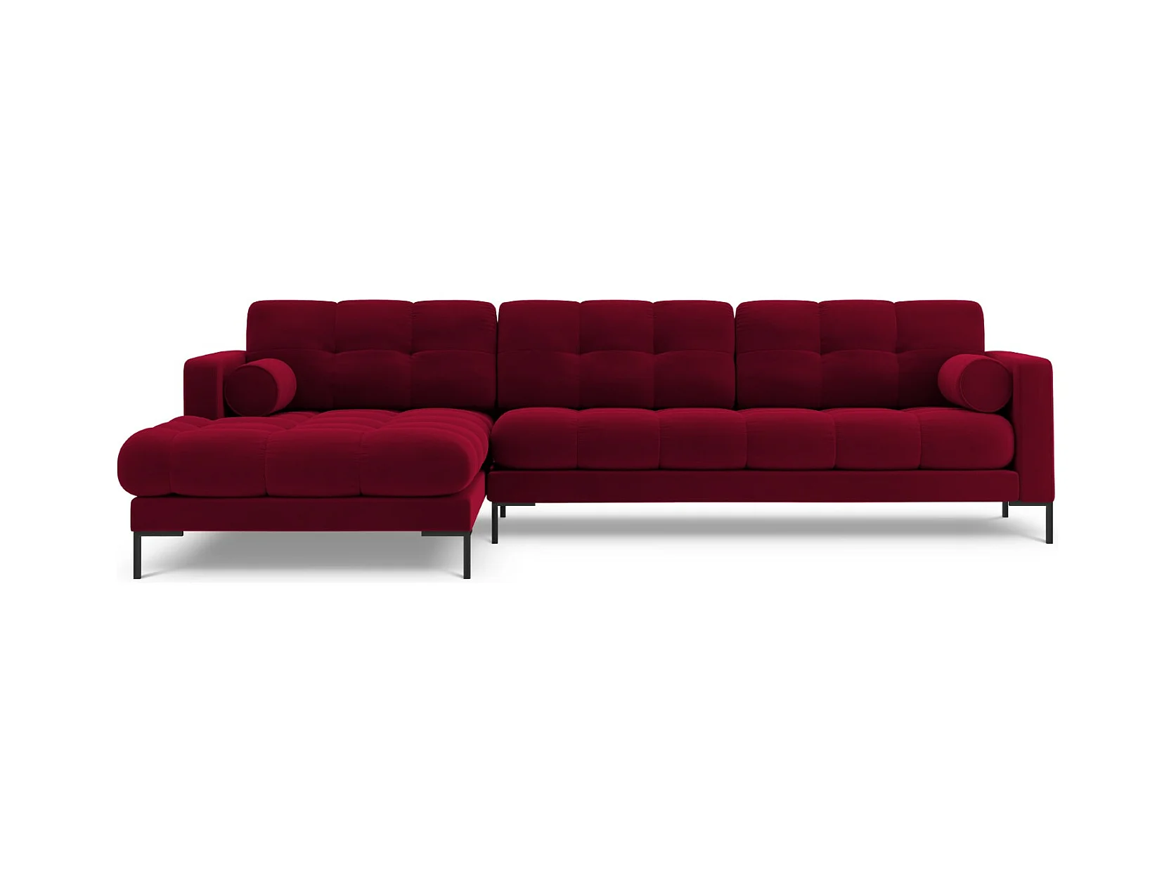 Cosmopolitan Design - Narożnik lewy, "Bali" 5 miejsc welur, czerwony - 293x185x75cm
