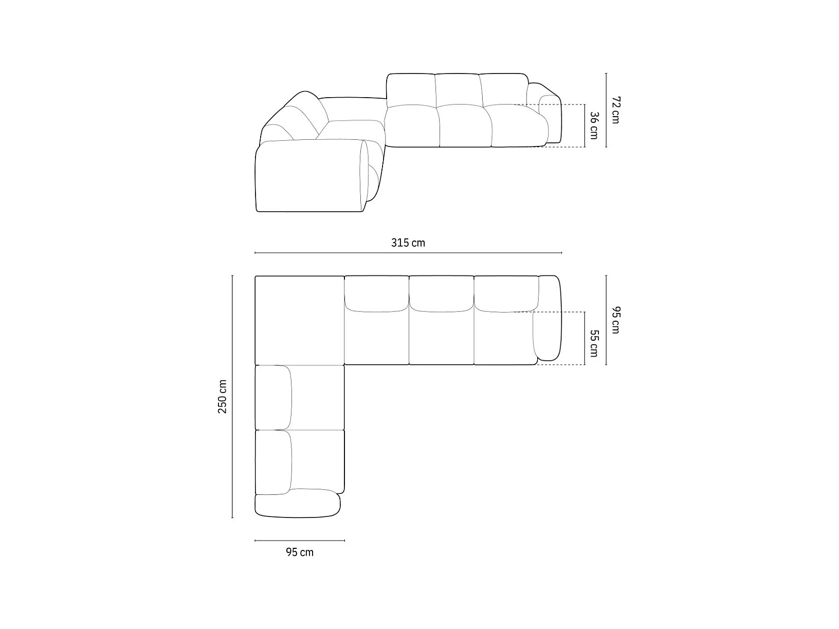 Cosmopolitan Design - Narożnik prawy, "Nolio" 4 miejsca szenil, petrol - 315x250x72cm