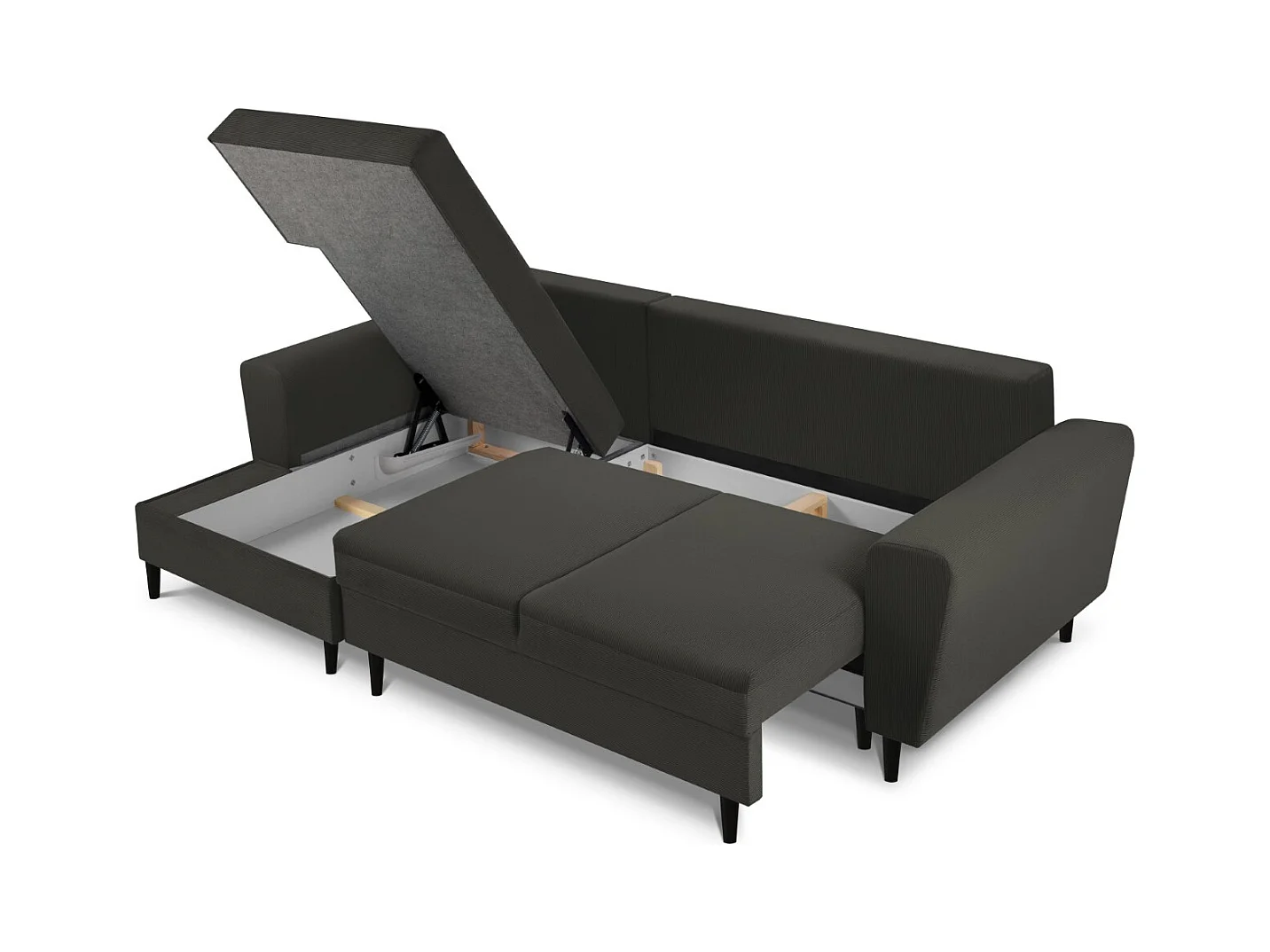Cosmopolitan Design - Narożnik lewy rozkładany ze schowkiem, "Kyoto" 4 miejsca sztruks, czarny - 241x145x88cm