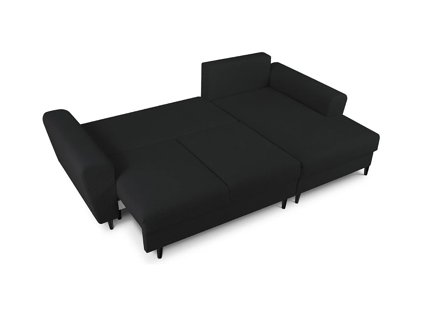 Cosmopolitan Design - Narożnik lewy rozkładany ze schowkiem, "Kyoto" 4 miejsca boucle, czarny - 241x145x88cm