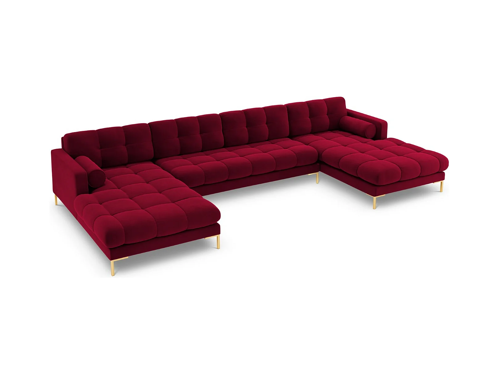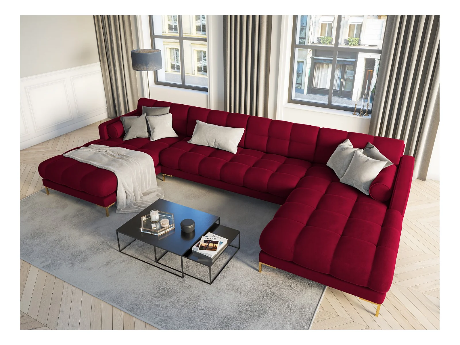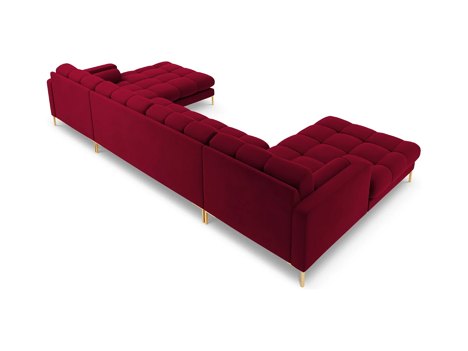 Cosmopolitan Design - Sofa panoramiczna, "Bali" 7 miejsc welur, czerwony - 383x185x75cm