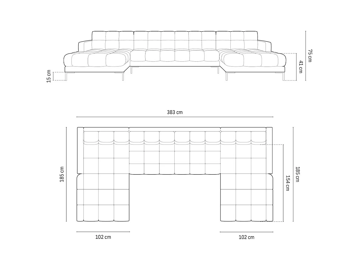 Cosmopolitan Design - Sofa panoramiczna, "Bali" 7 miejsc tkanina strukturalna, cegła - 383x185x75cm