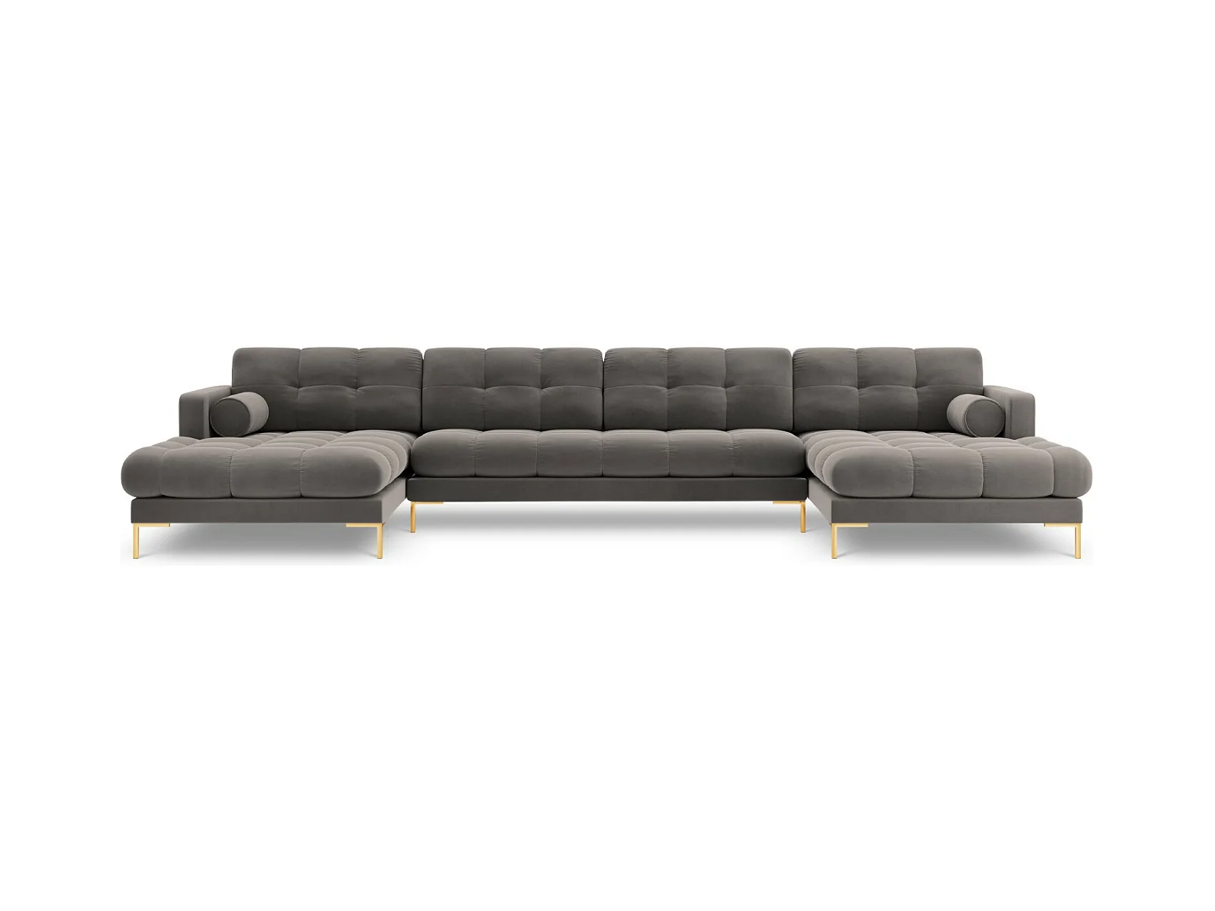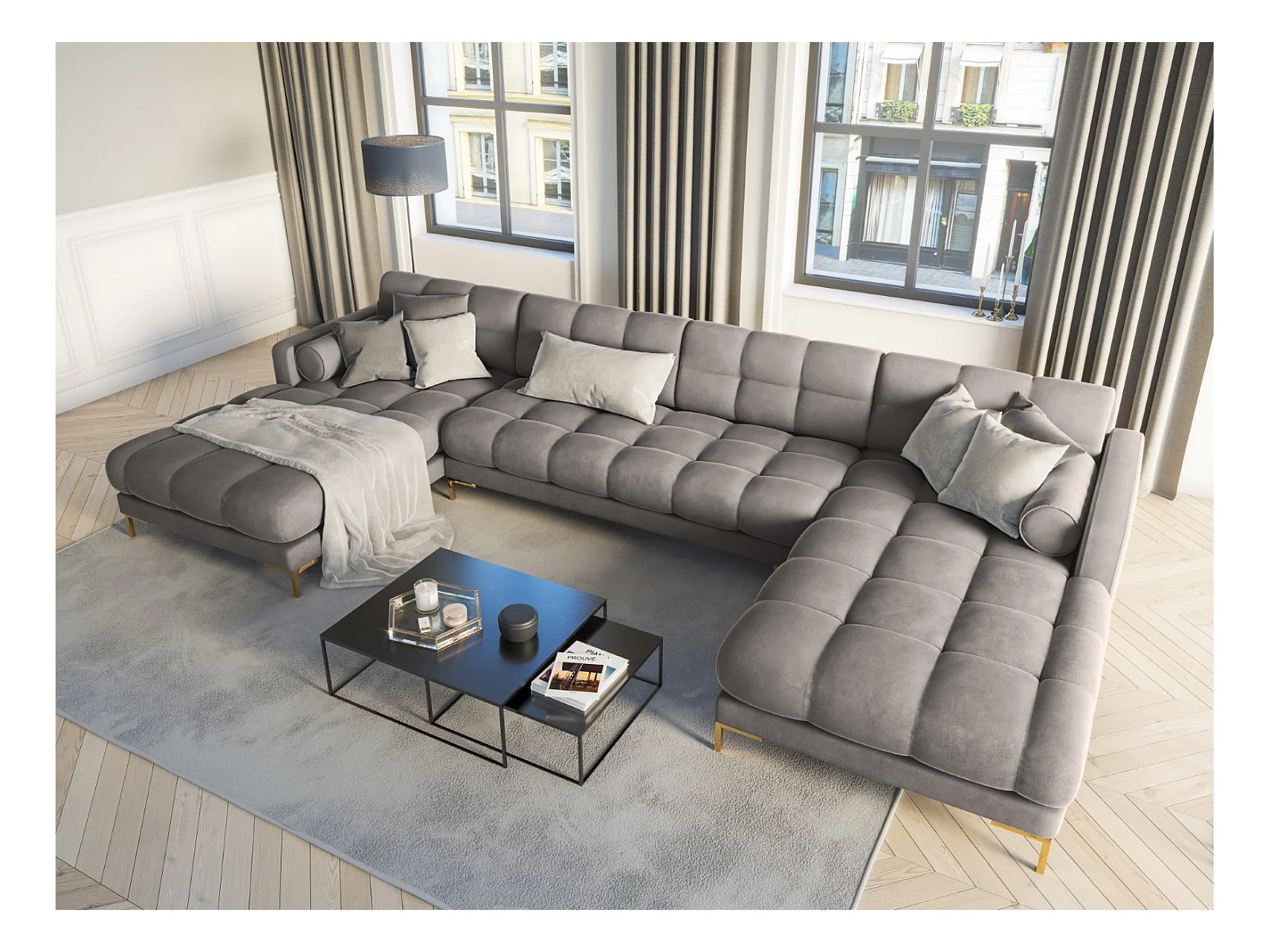 Cosmopolitan Design - Sofa panoramiczna, "Bali" 7 miejsc welur, szary jasny - 383x185x75cm