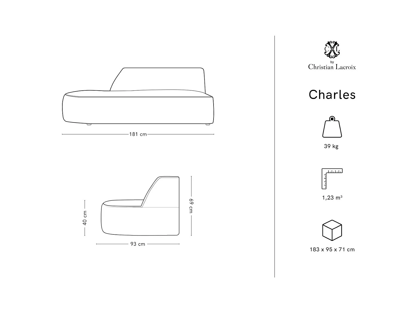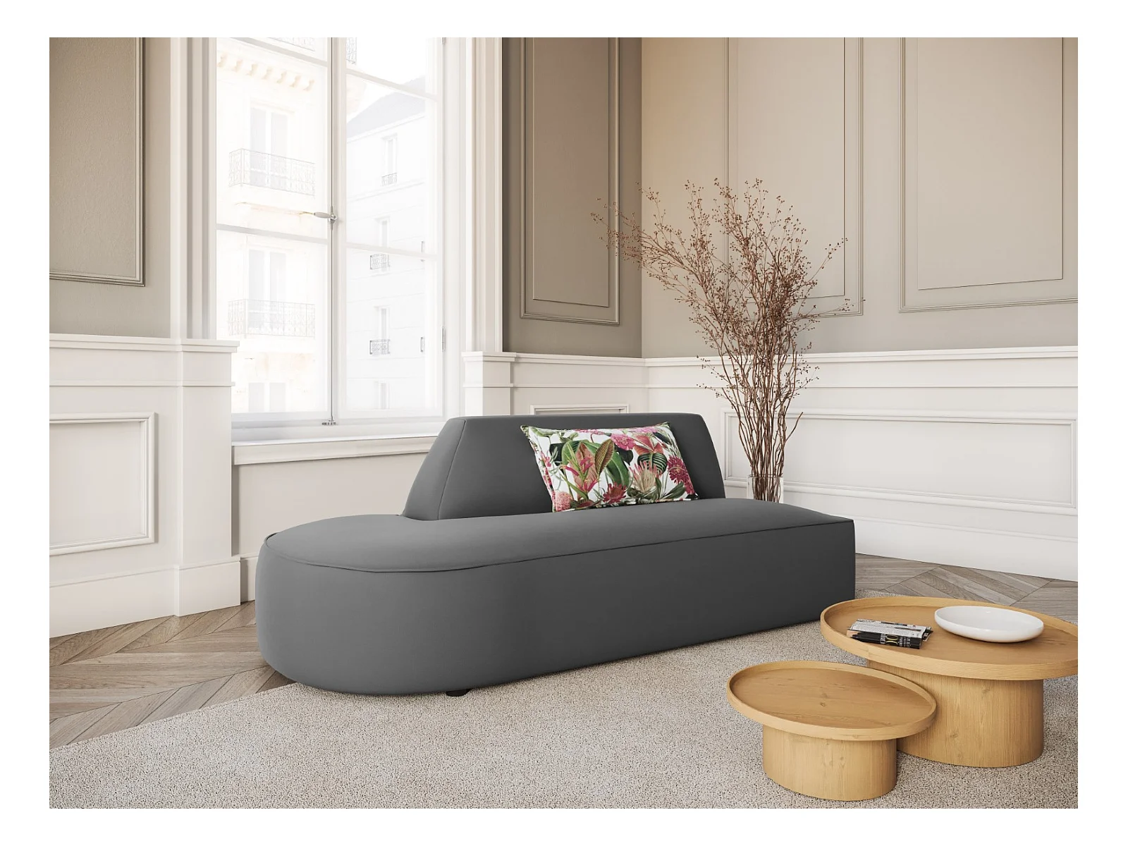 CXL by Christian Lacroix - Sofa modułowa bok lewy, "Charles" 2 miejsca welur, szary ciemny - 181x93x69cm