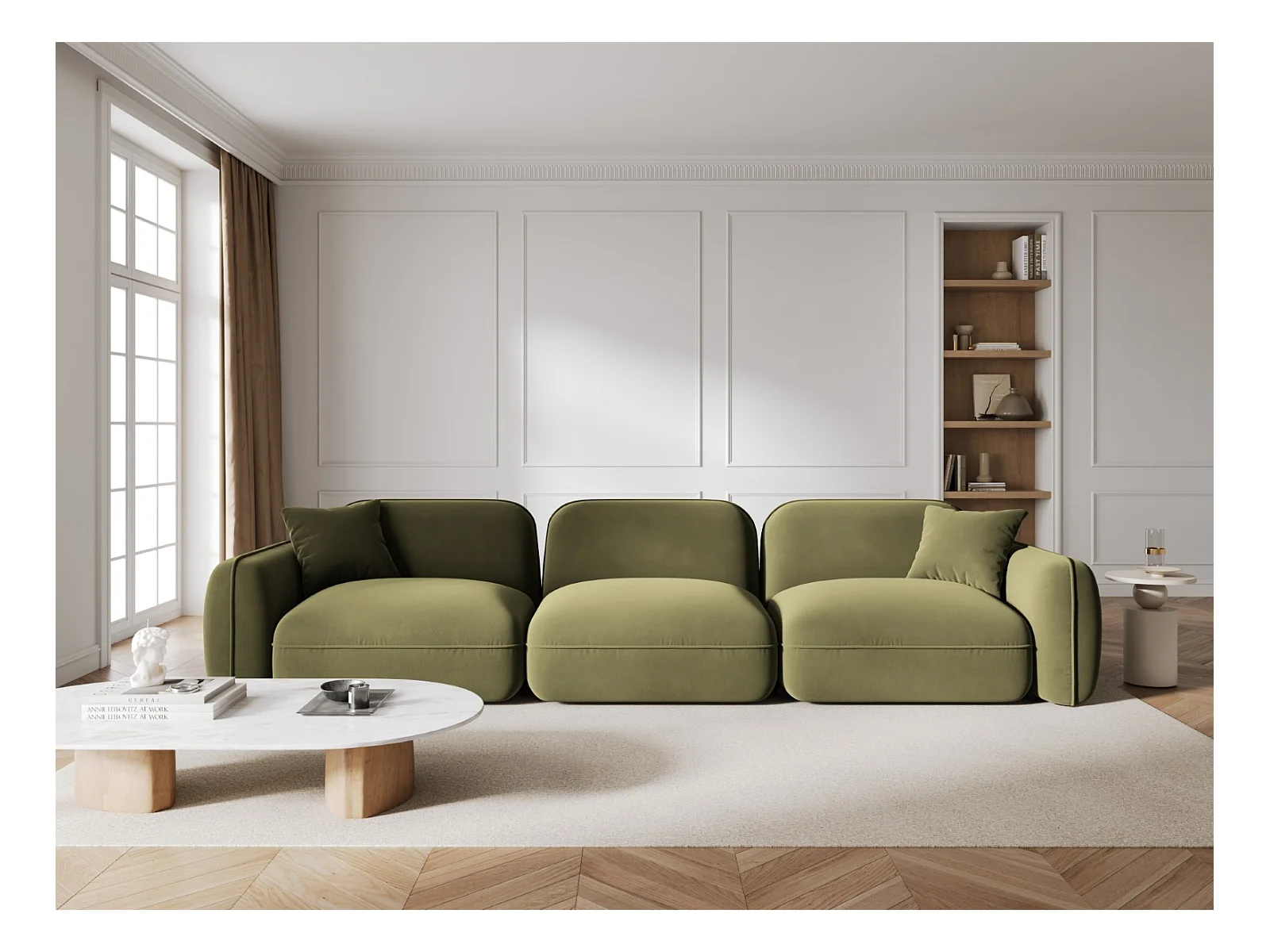 CXL by Christian Lacroix - Sofa modułowa, "Maurie" 4 miejsca welur, zieleń wojskowa - 264x107x90cm