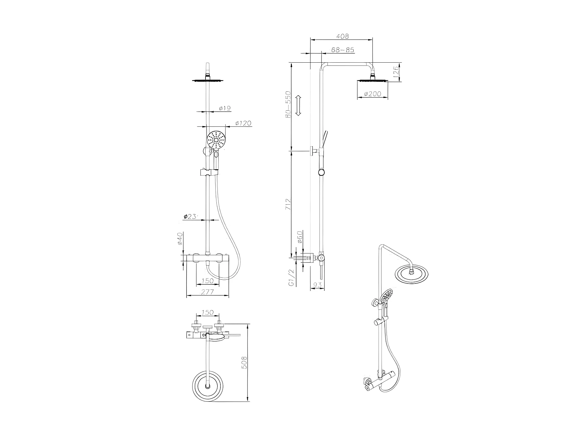 Kolumna prysznicowa z deszczownicą GURARA Czarny/ złoty