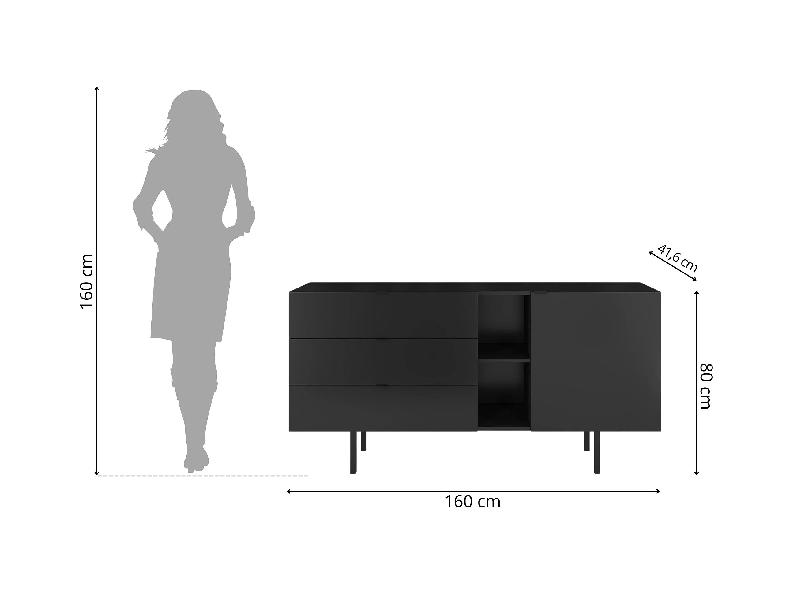 Czarna komoda Dancan YOKO / szerokość 156 cm