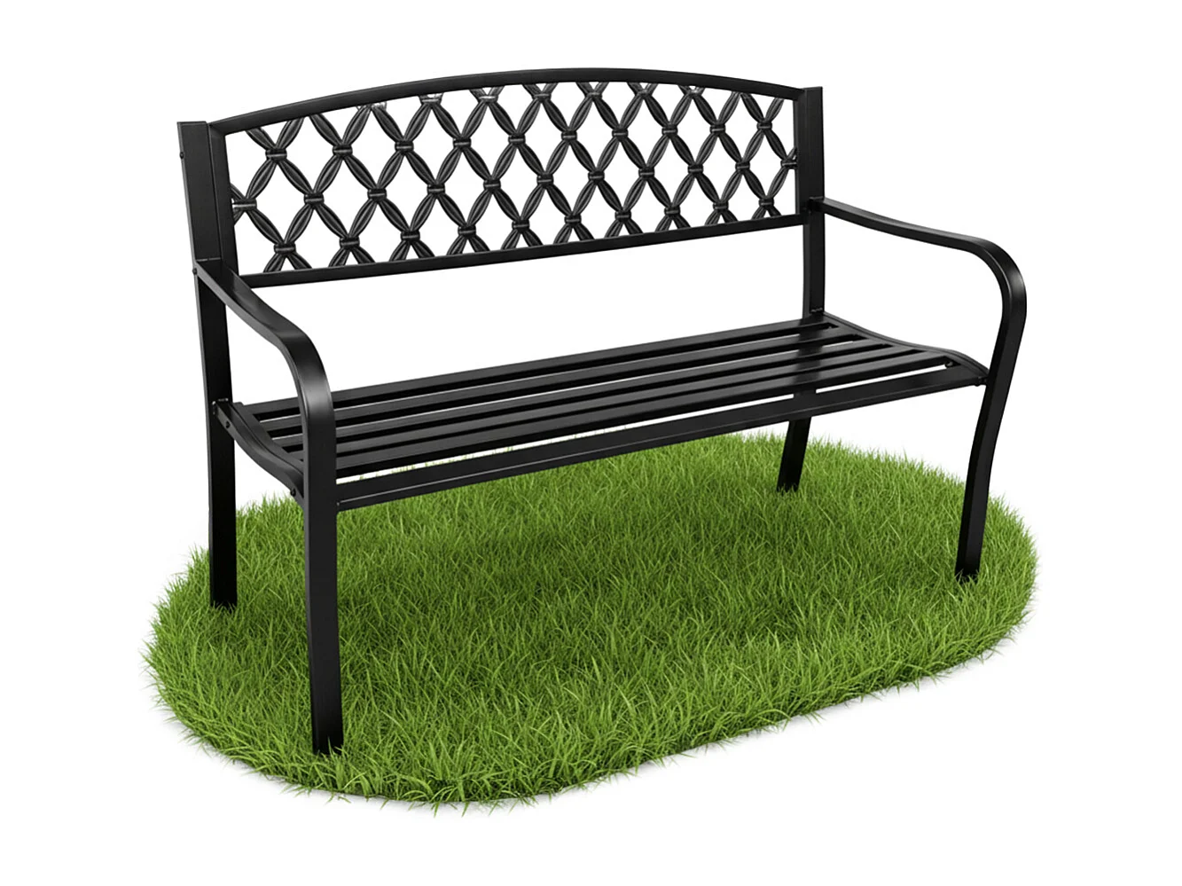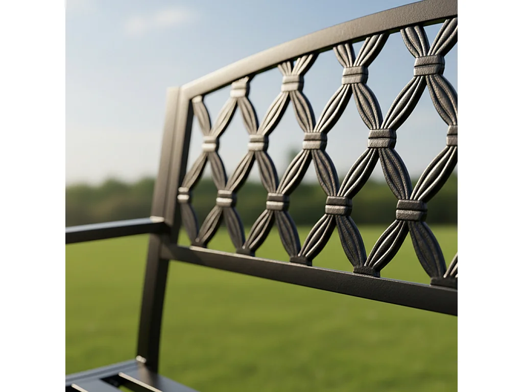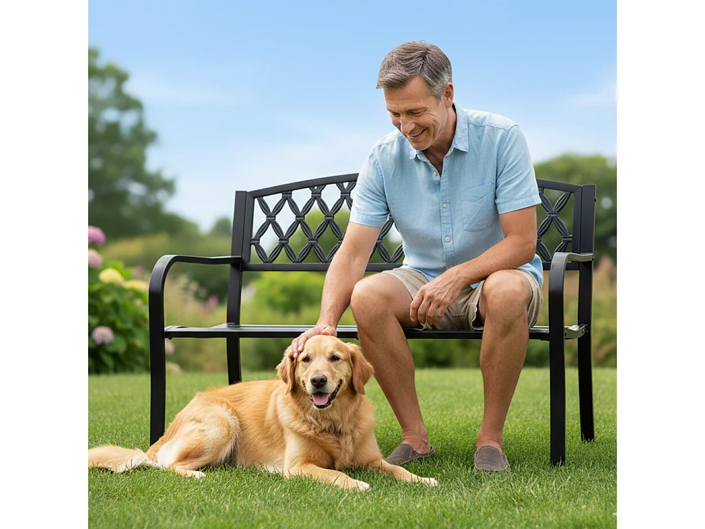 Czarna ławka ogrodowa CLASSICO ze stalowymi nogami i żeliwnym oparciem szerokość 127 cm