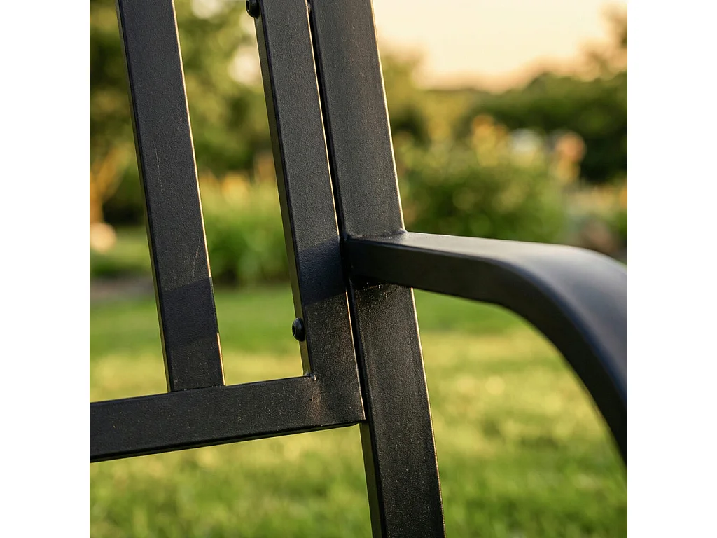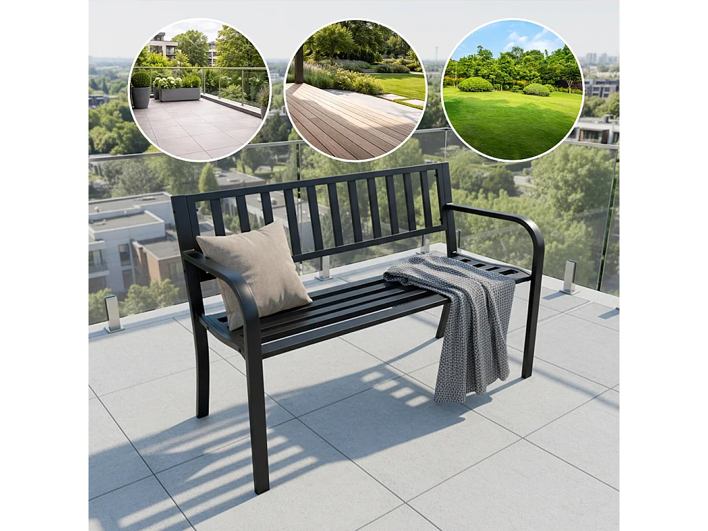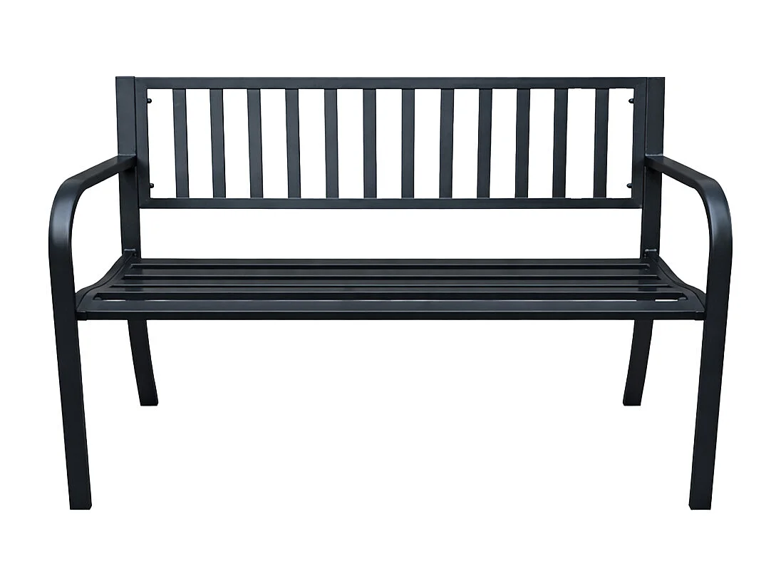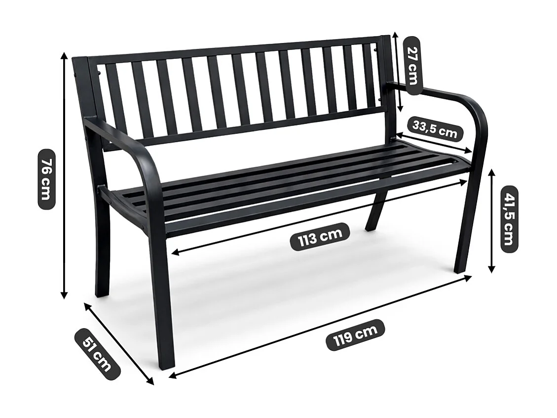 Czarna ławka ogrodowa LINEA ze stalowymi nogami i oparciem szerokość 119 cm