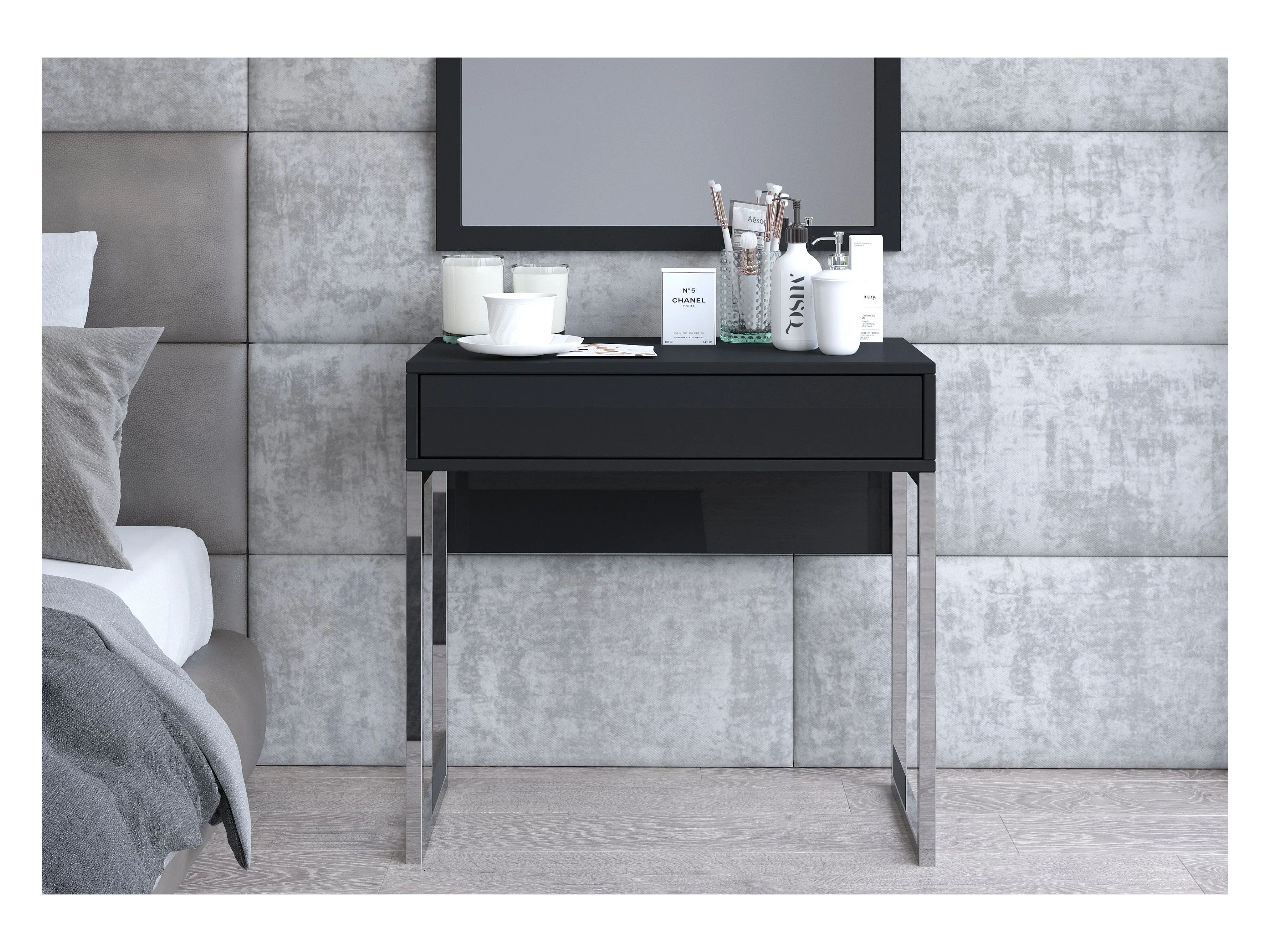 Czarna nowoczesna toaletka Dancan EVA ze srebrnym stelażem
