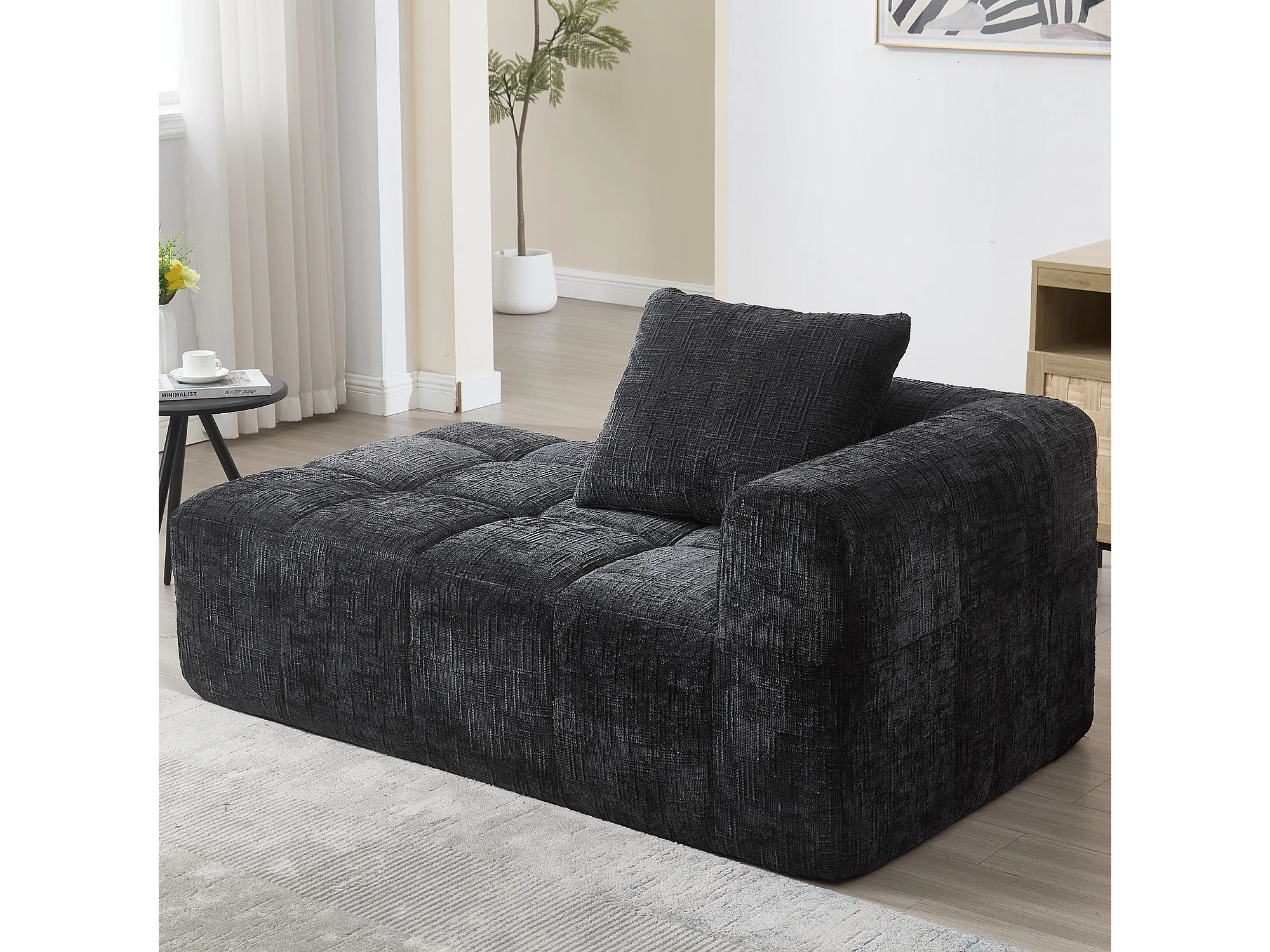 Czarna sofa 1-osobowa - Prosta sofa z poduszkami i kieszeniami - wzór śniegu