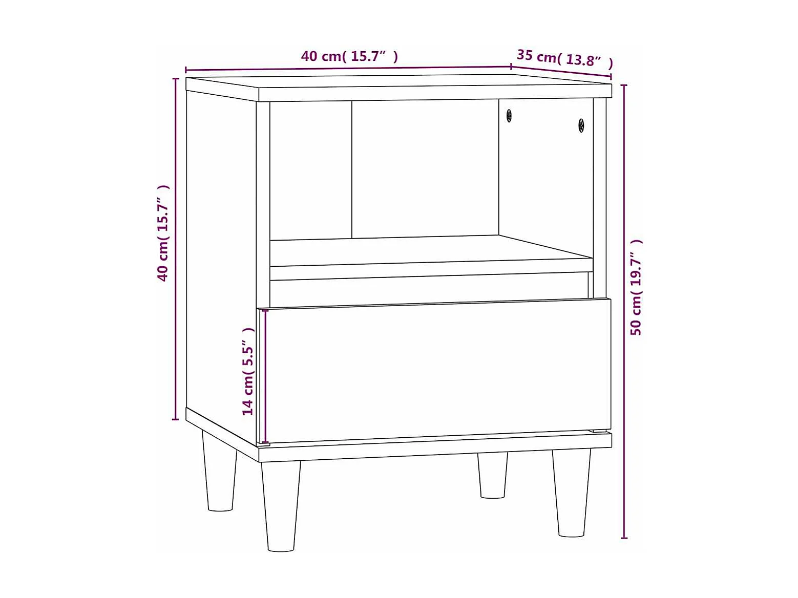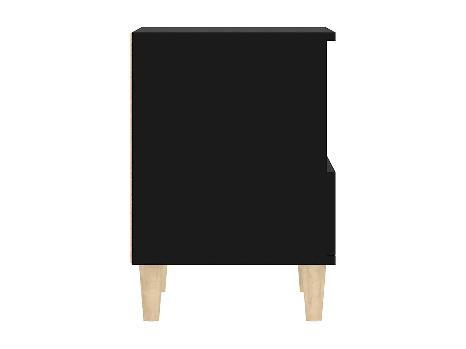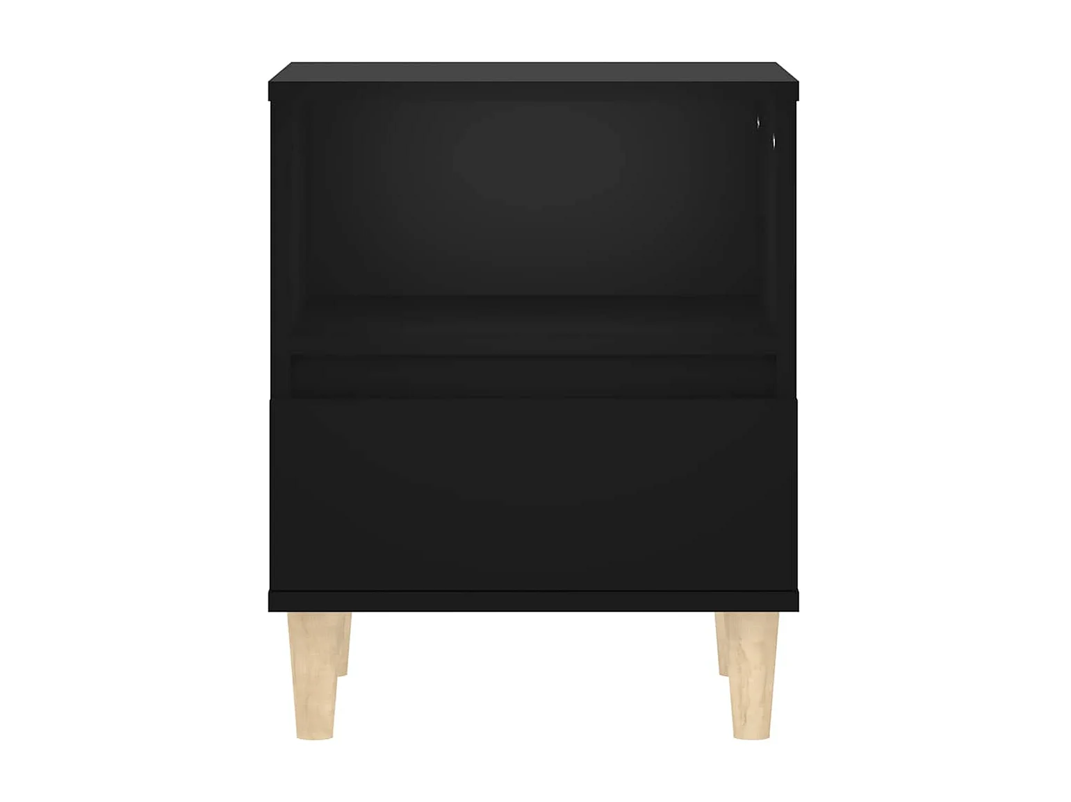 Czarna szafka nocna 40x35x50 cm z drewna inżynieryjnego z szufladą i przegródką, nowoczesny design i nogi z litego drewna