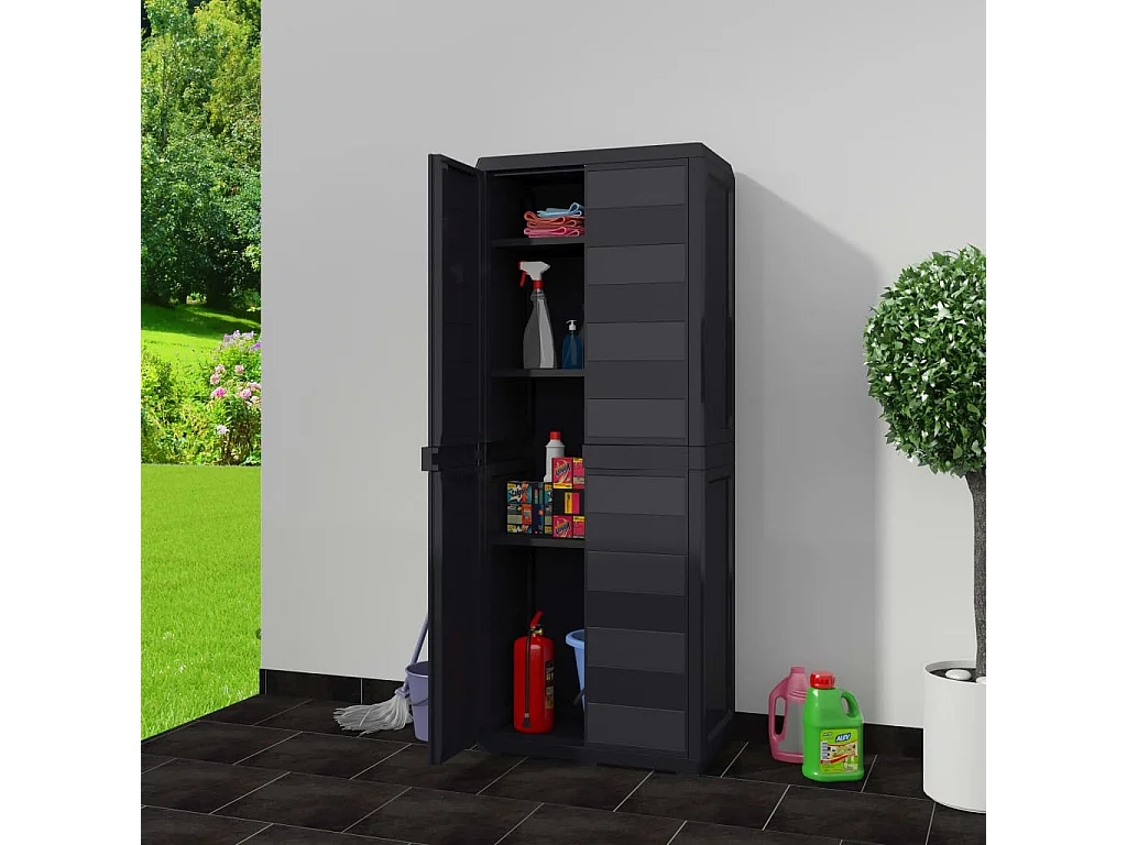 Czarna Szafka Ogrodowa z 3 Wentylowanymi i Zamykanymi Półkami - Wytrzymały Polipropylen - Łatwy Montaż