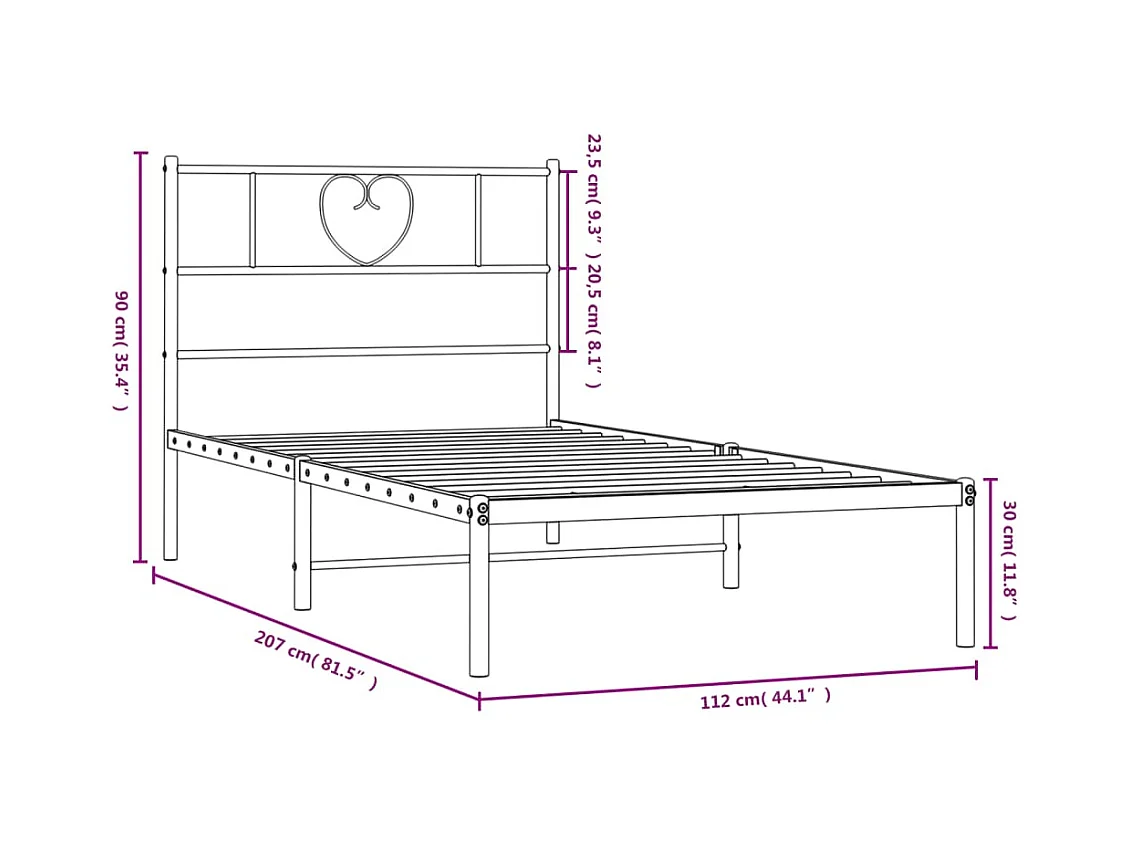 Czarny metalowy stelaż łóżka z zagłówkiem 107x203cm i przestrzenią do przechowywania