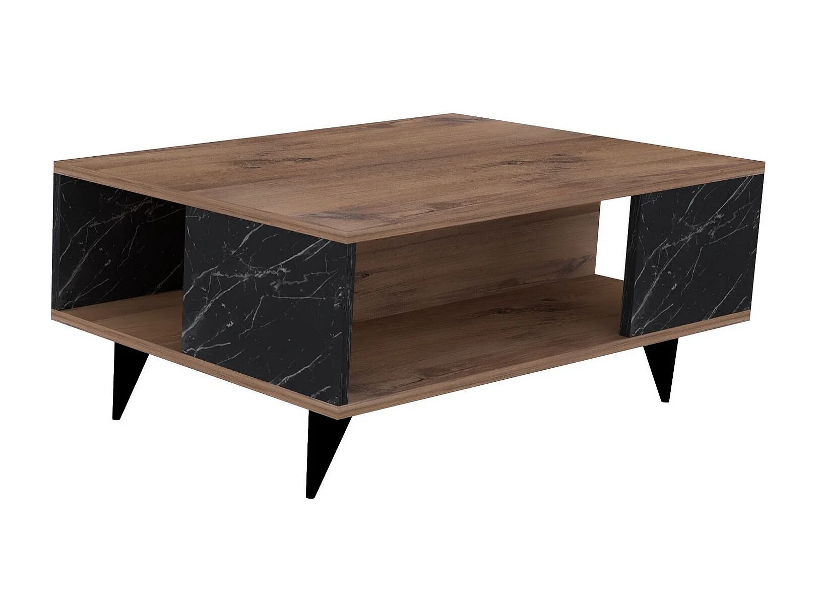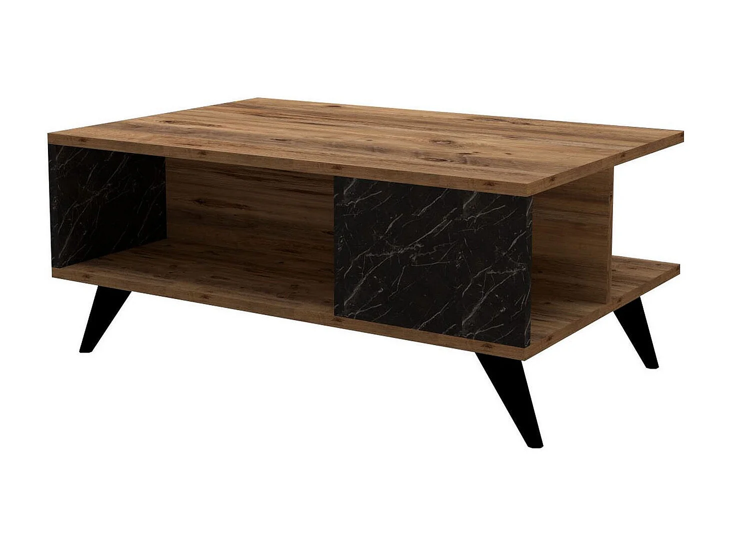 Drewniany stolik kawowy "Yuka" - 90 x 60 x 39 cm - Orzech, Czarny