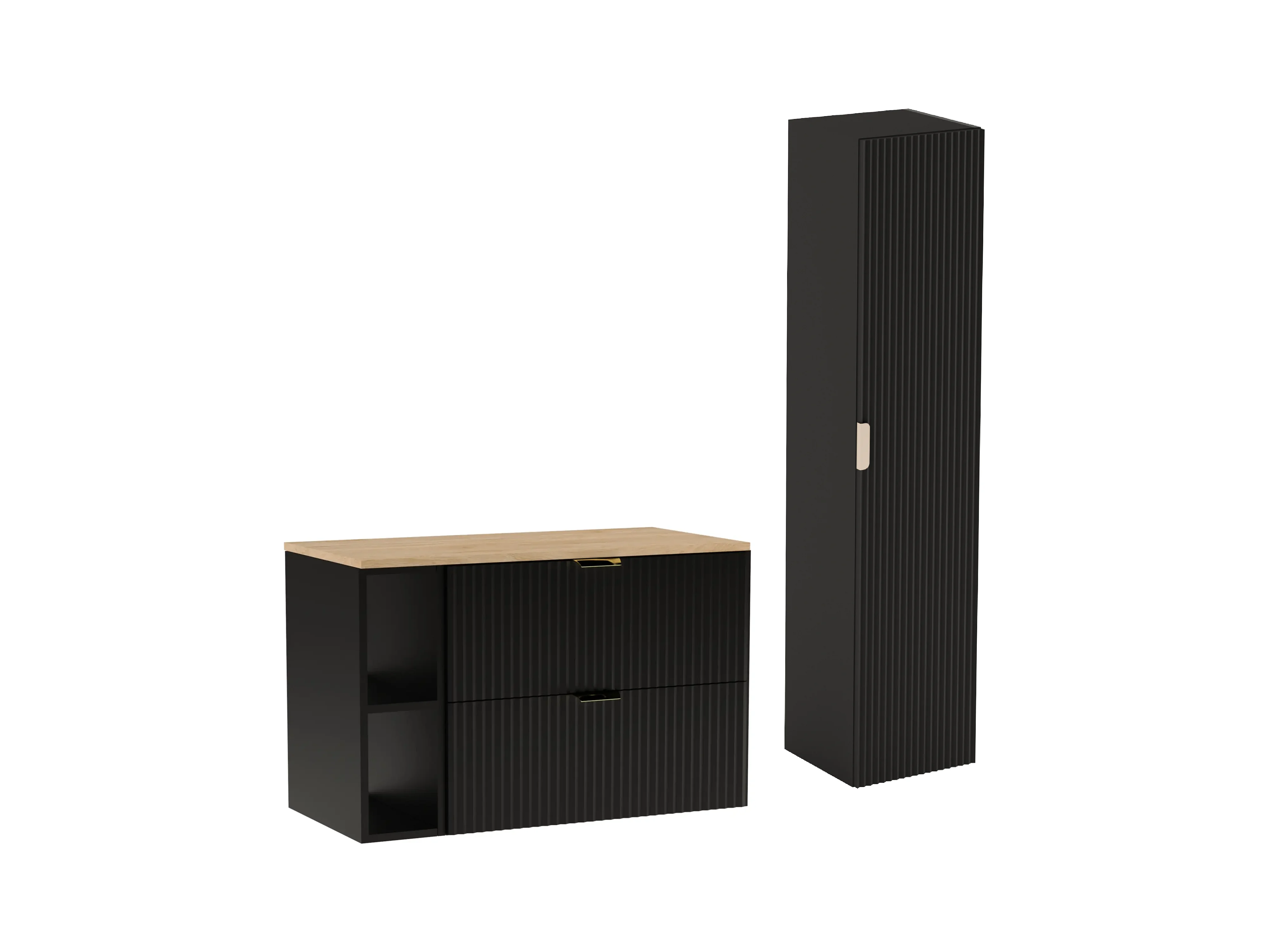 Czarny Zestaw Łazienkowy 100cm Szafka Regał Blat Słupek Ryflowane Fronty