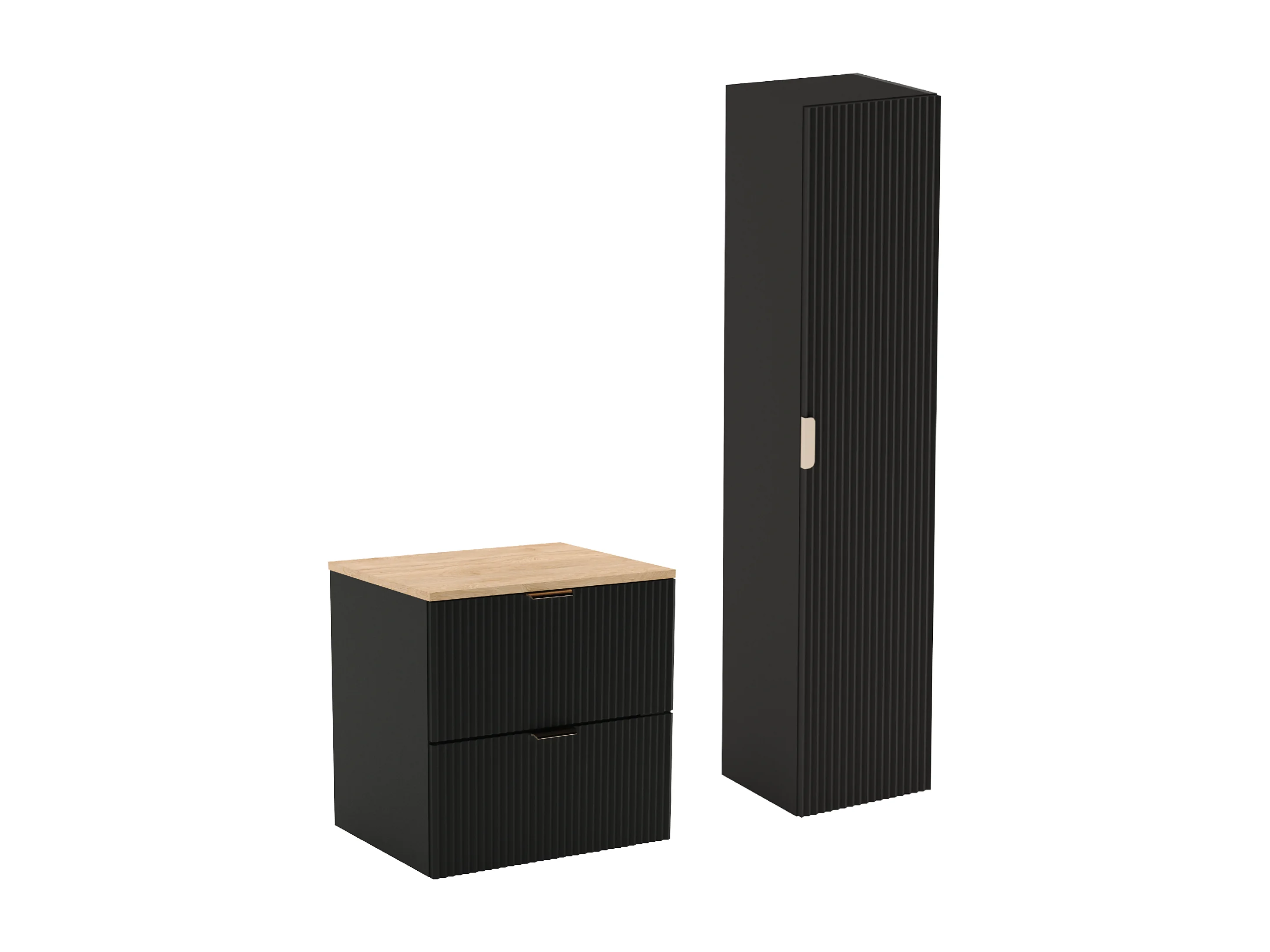 Zestaw Łazienkowy 60cm Ryflowane Fronty Czarny Amy Słupek