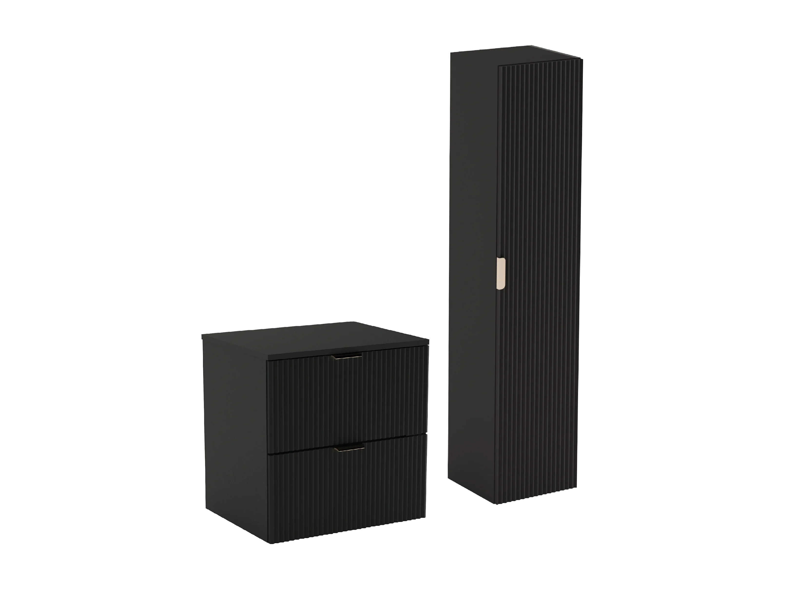 Zestaw Łazienkowy 60cm Ryflowane Fronty Czarny Amy Słupek