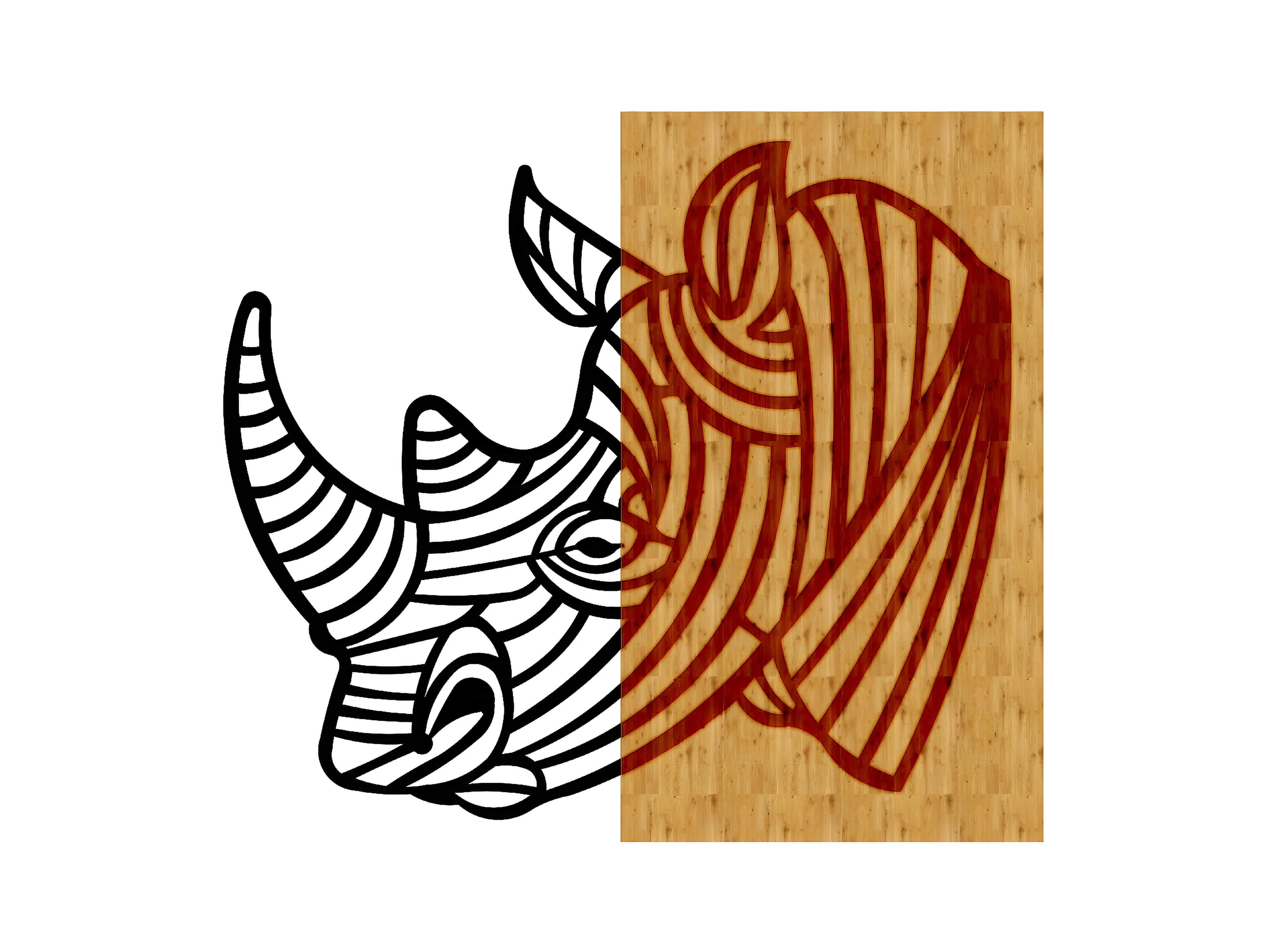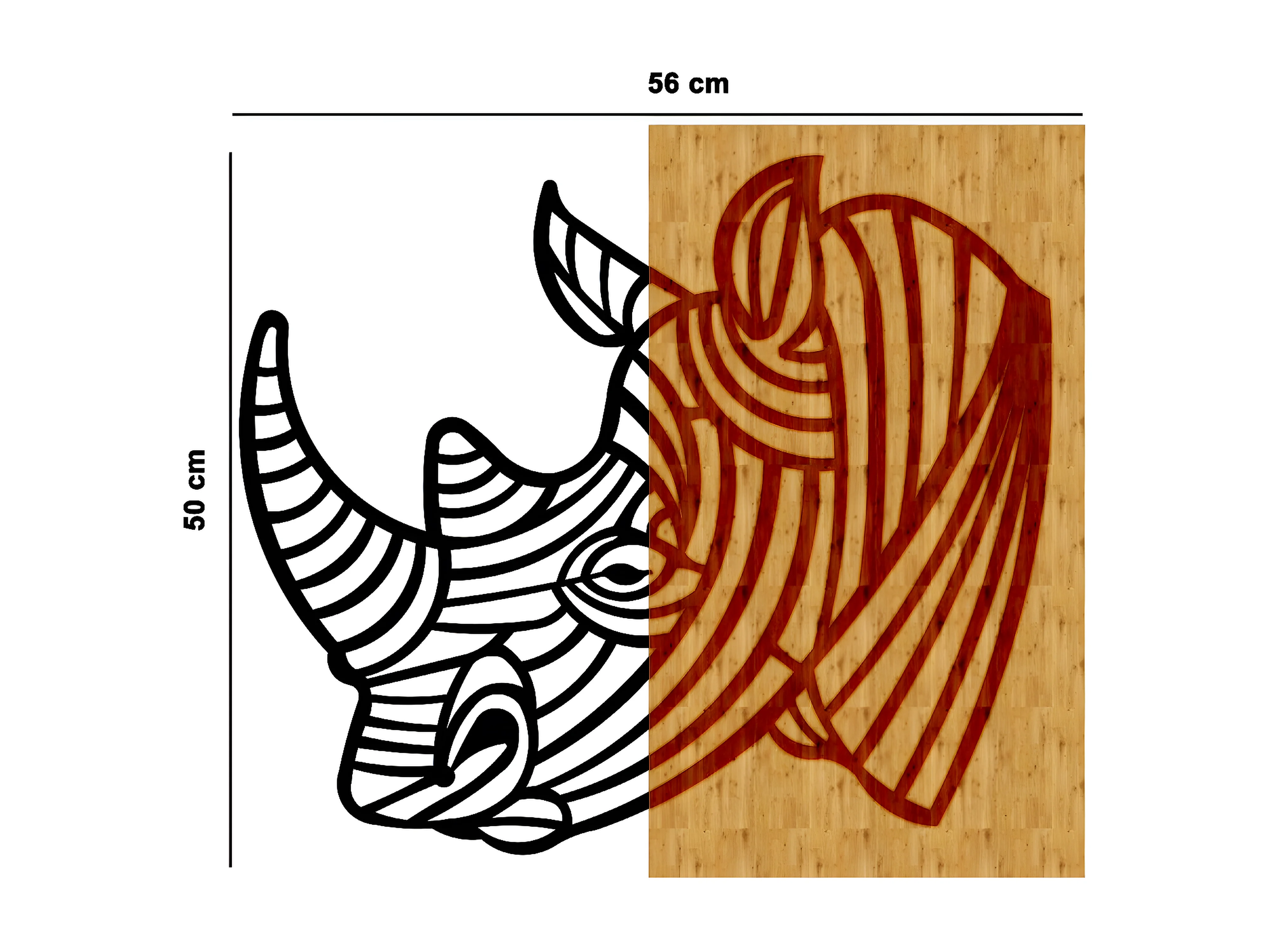 Dekoracja z Metalu i Drewna Nosorożec, Drewno, 56x1,8x50 cm, EPIKASA
