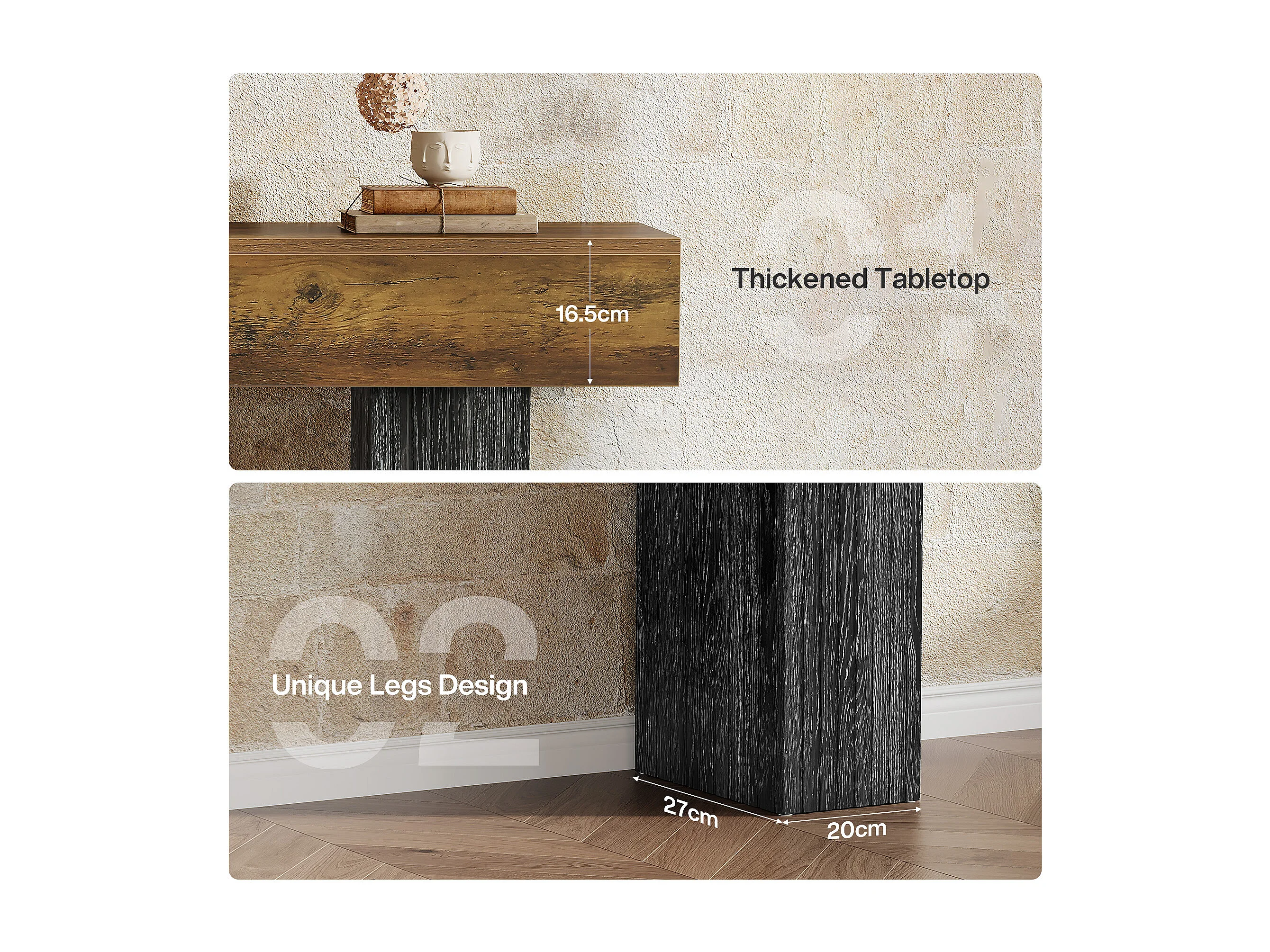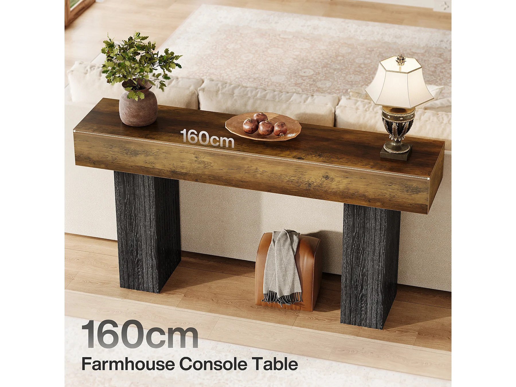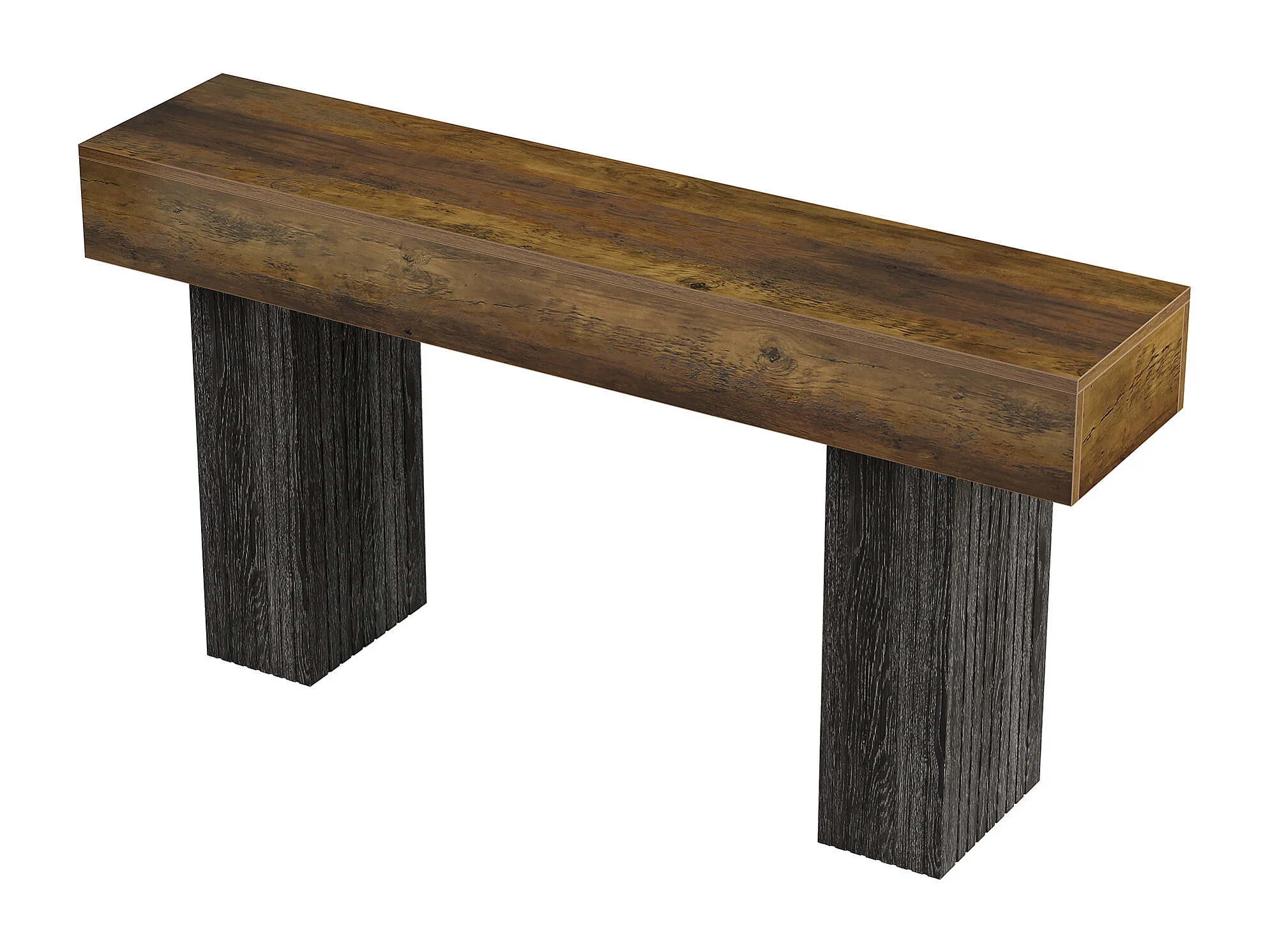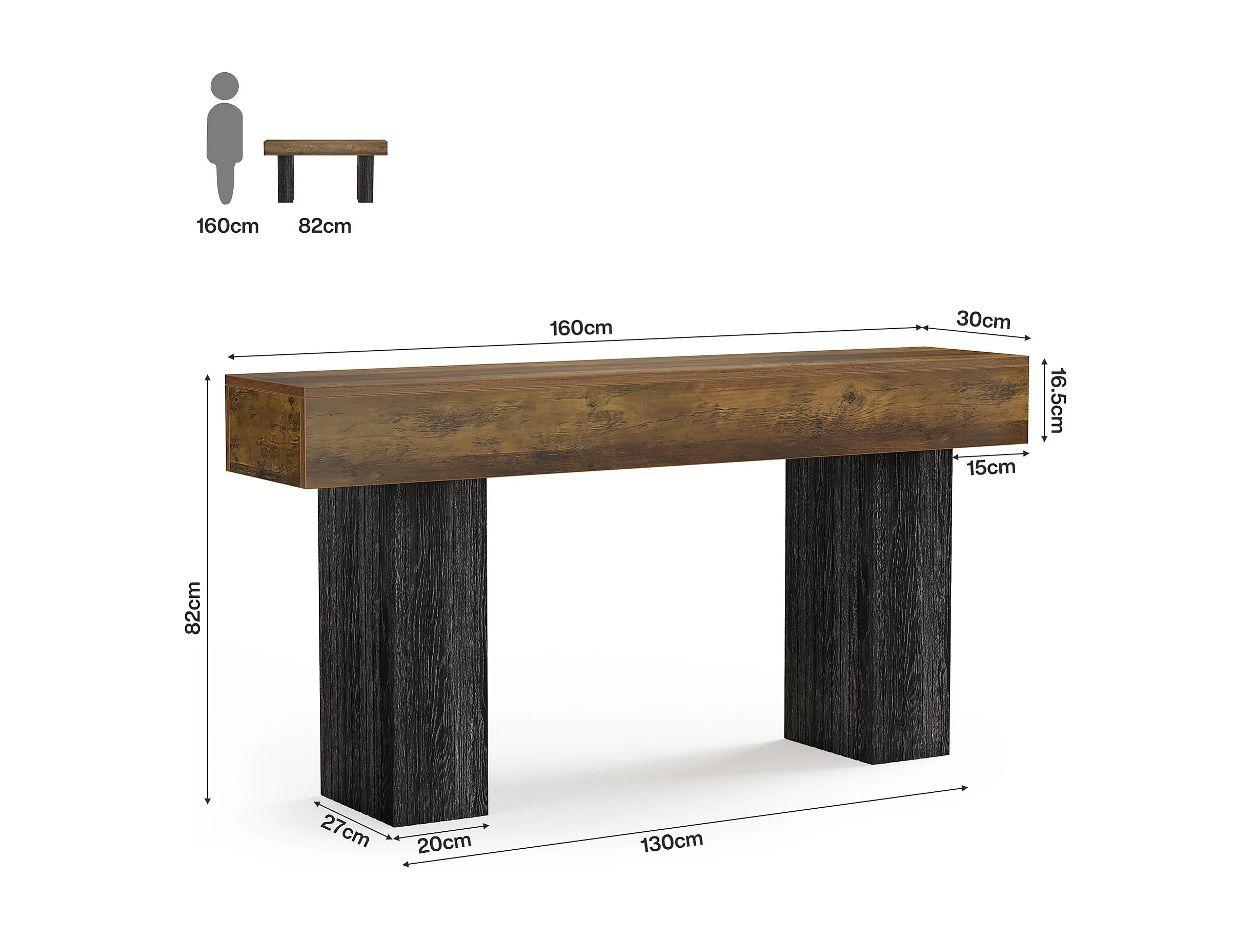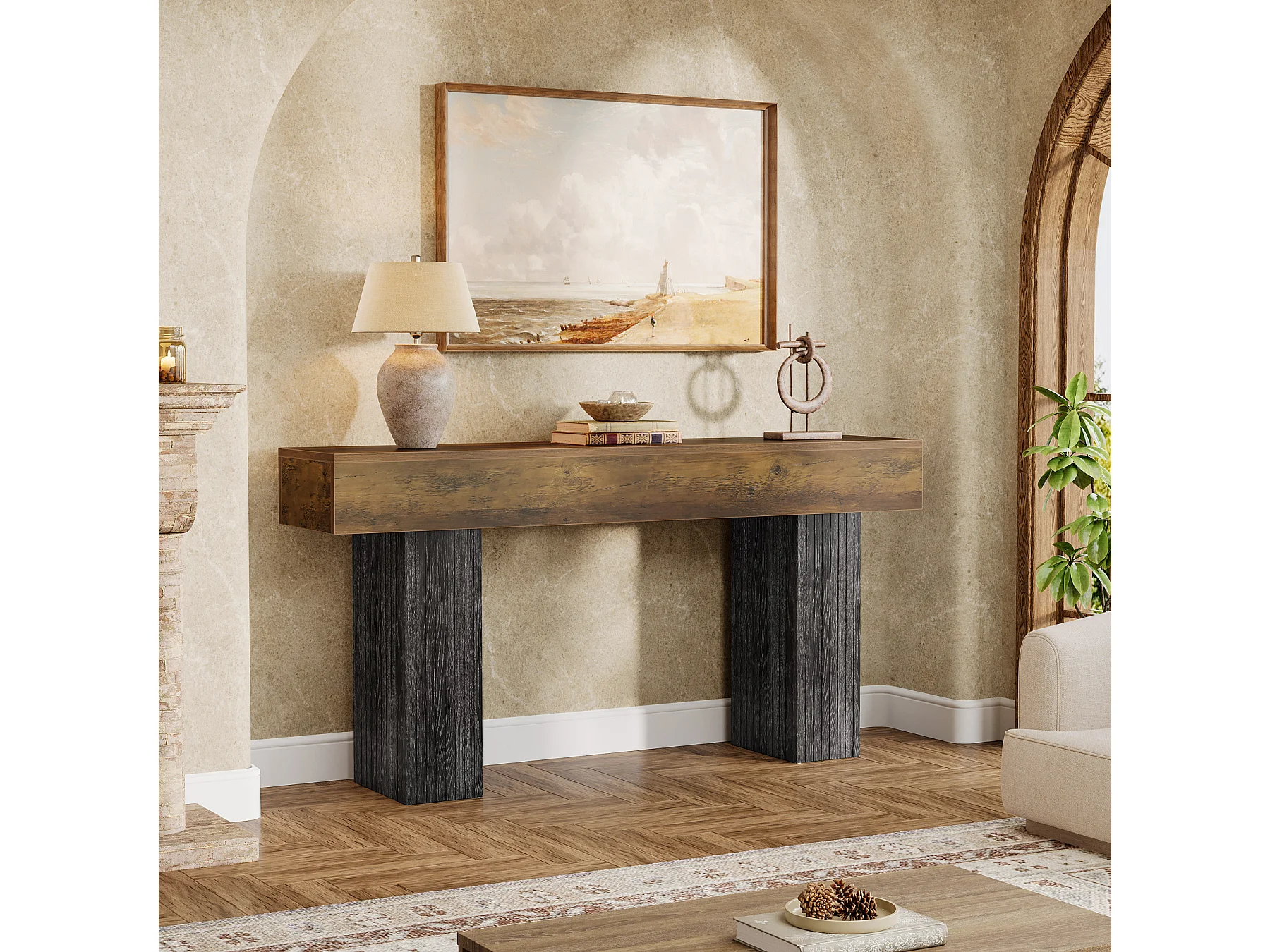 Długi stół do przedpokoju, konsola w stylu rustykalnym za kanapą do przedpokoju, korytarza, salonu