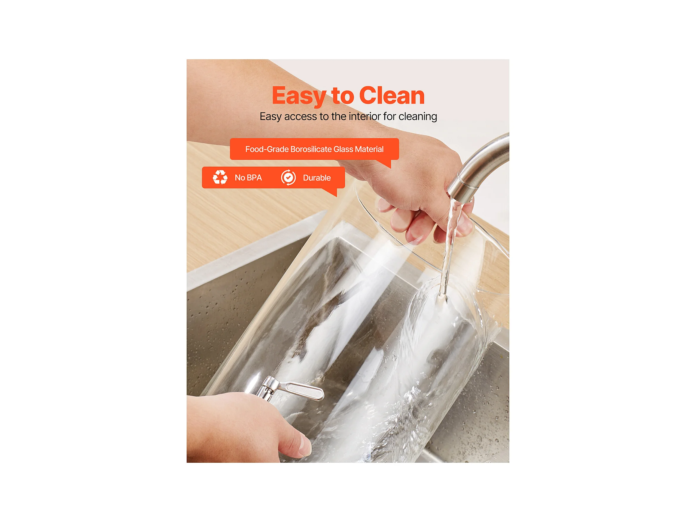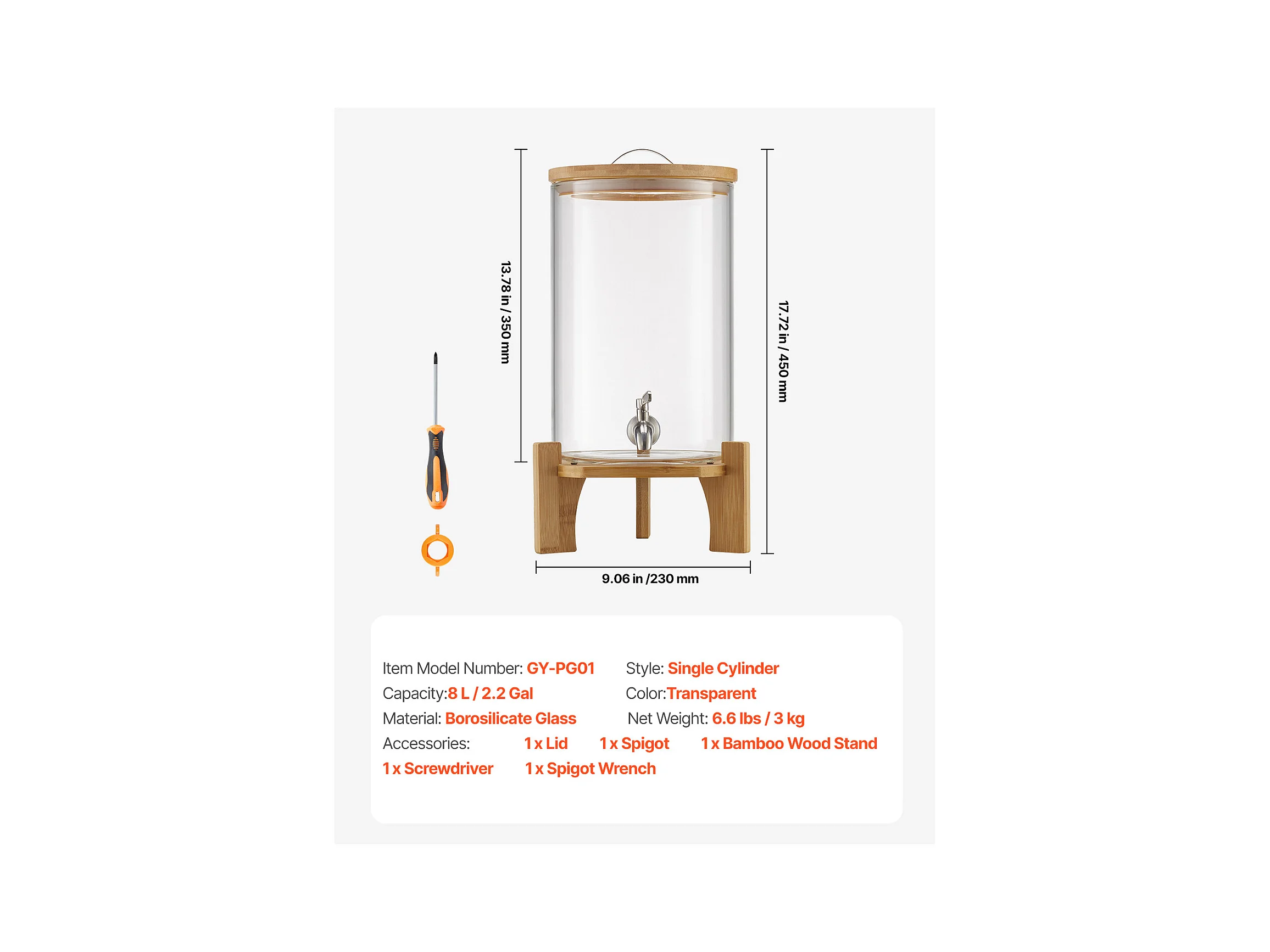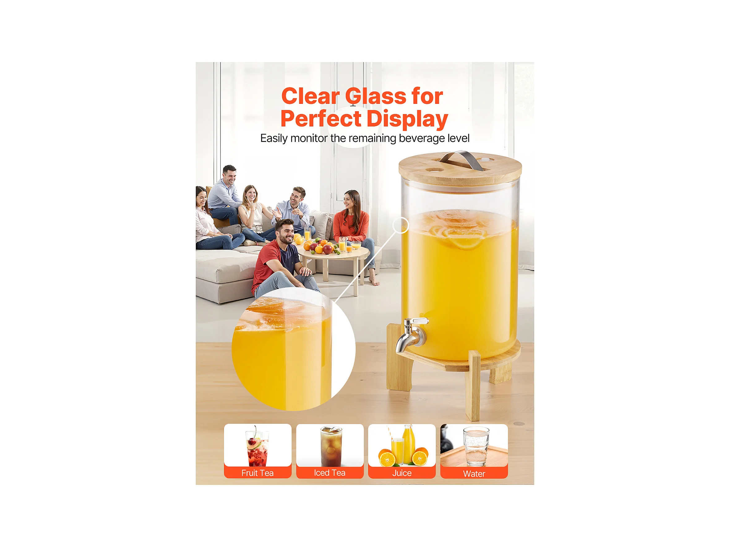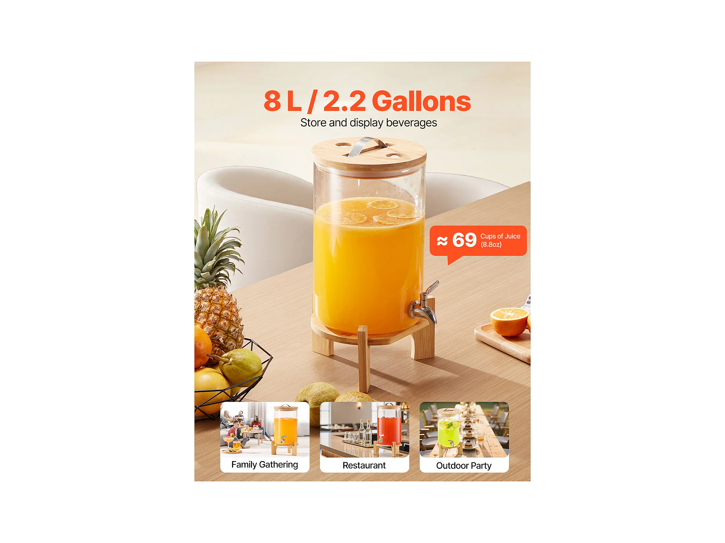 Dozownik Napojów SucceBuy, Duża Pojemność 8 L, Szklany Dystrybutor Wody, Dozowanie Wody, Soków, Lemoniady, Mrożonej Herbaty, do Kawy