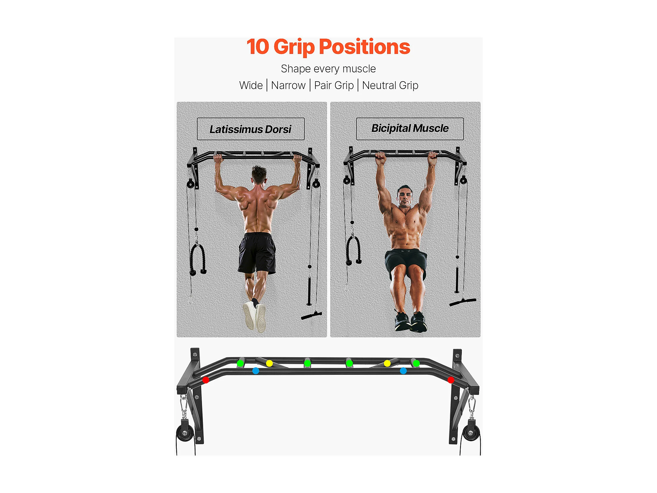 Drążek do Podciągania SucceBuy, Ścienny, Wielofunkcyjny, Wielouchwytowy Drążek Fitness, Wytrzymała Stal, Udźwig 200 kg, do Domowej Siłowni