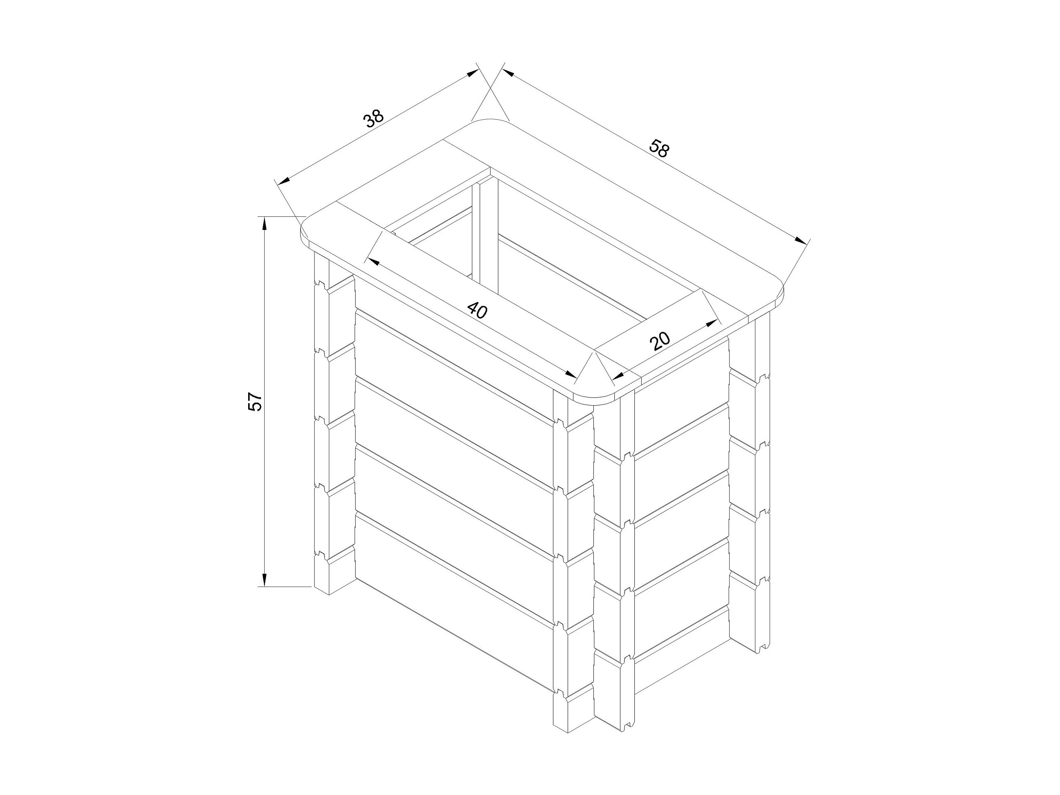 Drewniana doniczka na kwiaty - S57 x 38 x 58 cm - M611-1