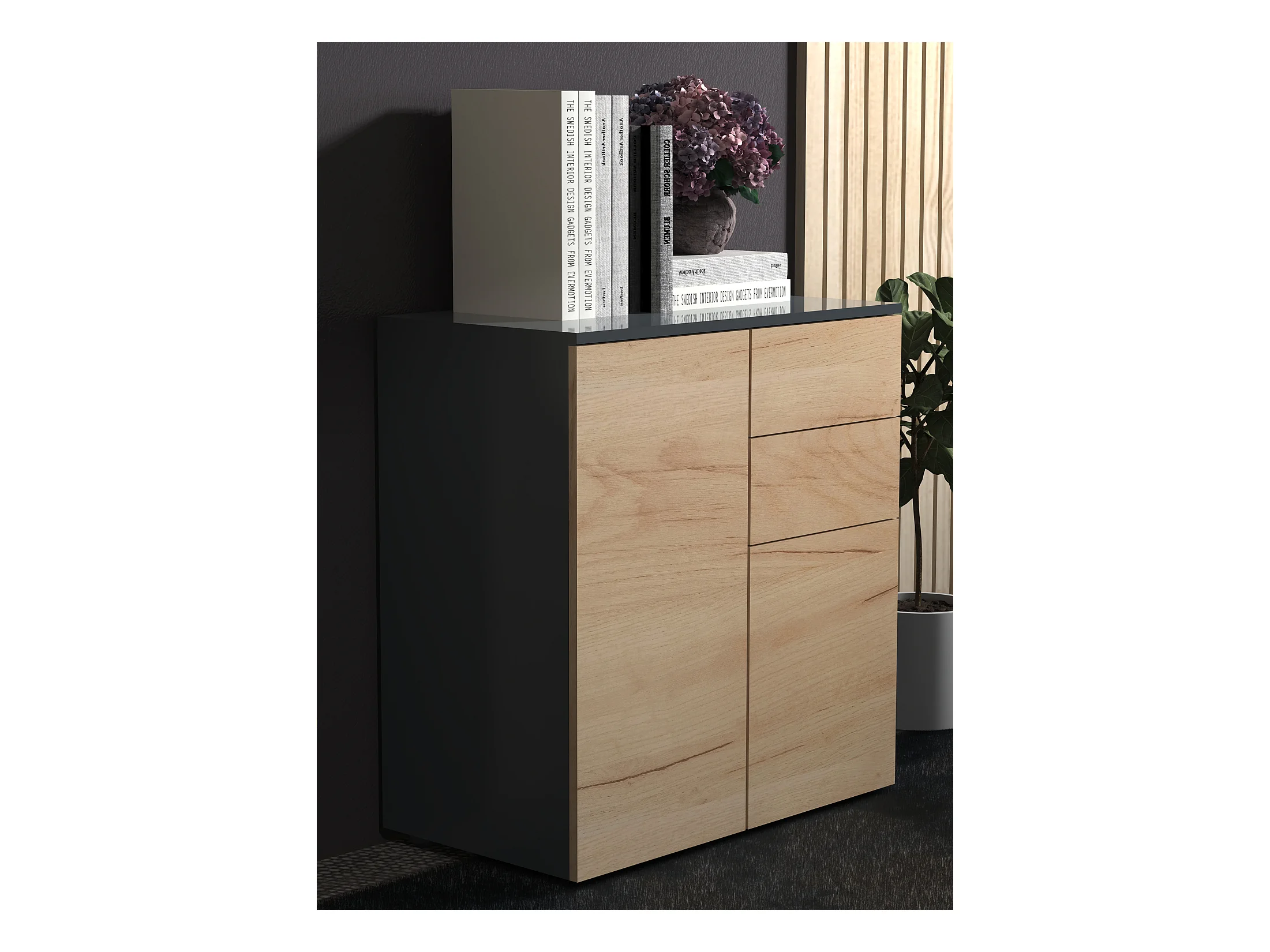 Komoda TOLEDO 160 3D1S antracyt połysk/dąb grandson