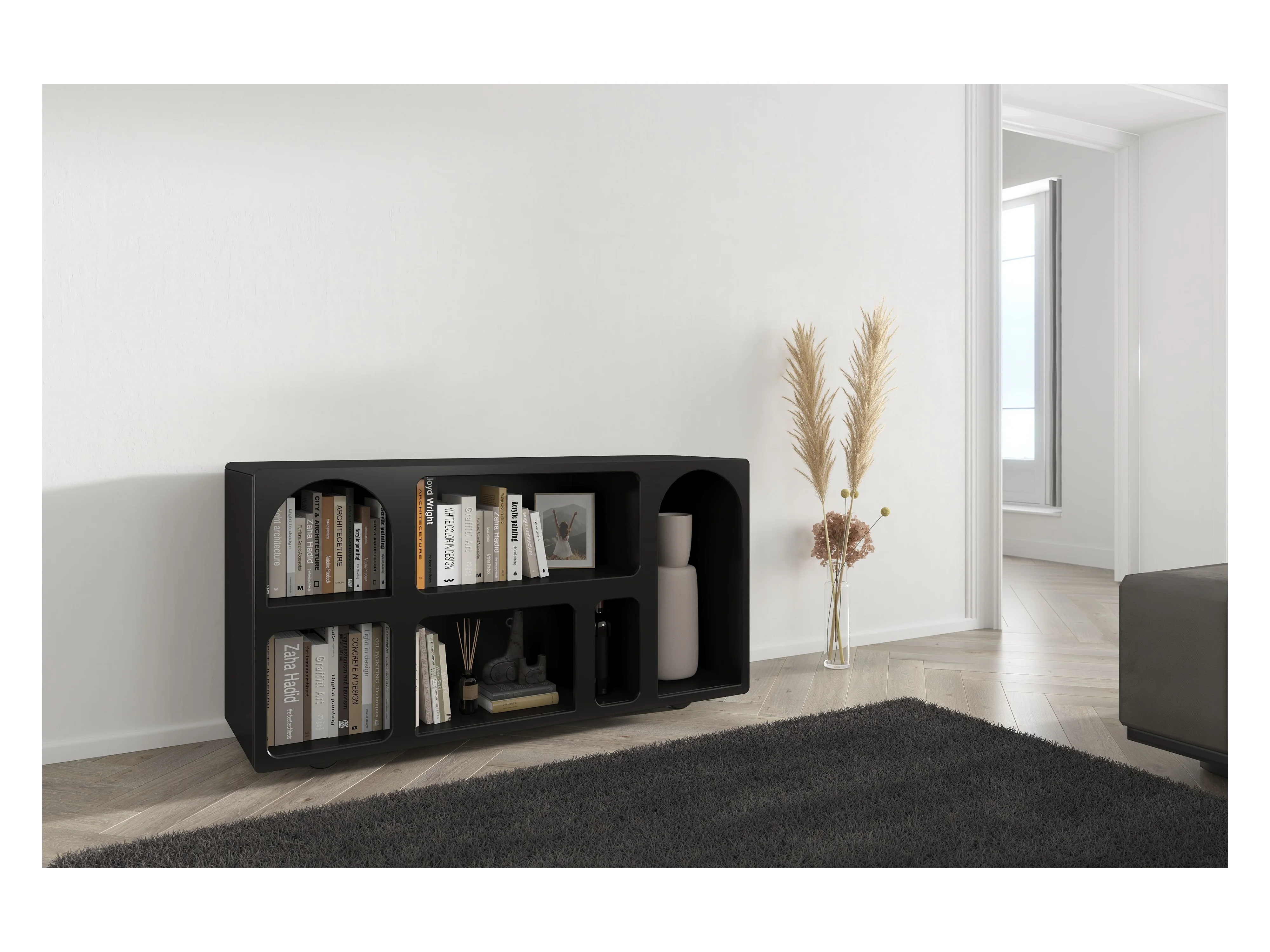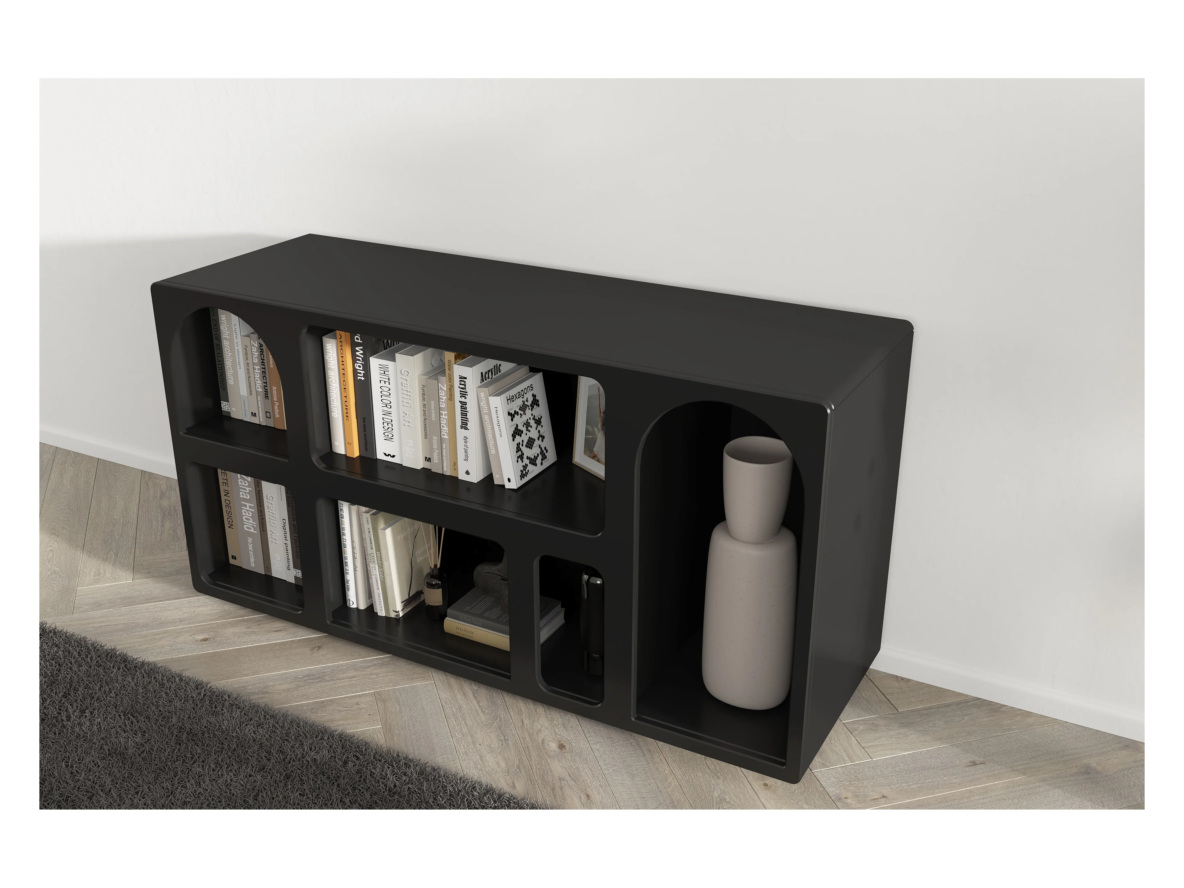 Półka z 5 wnękami - Czarny - LUELA