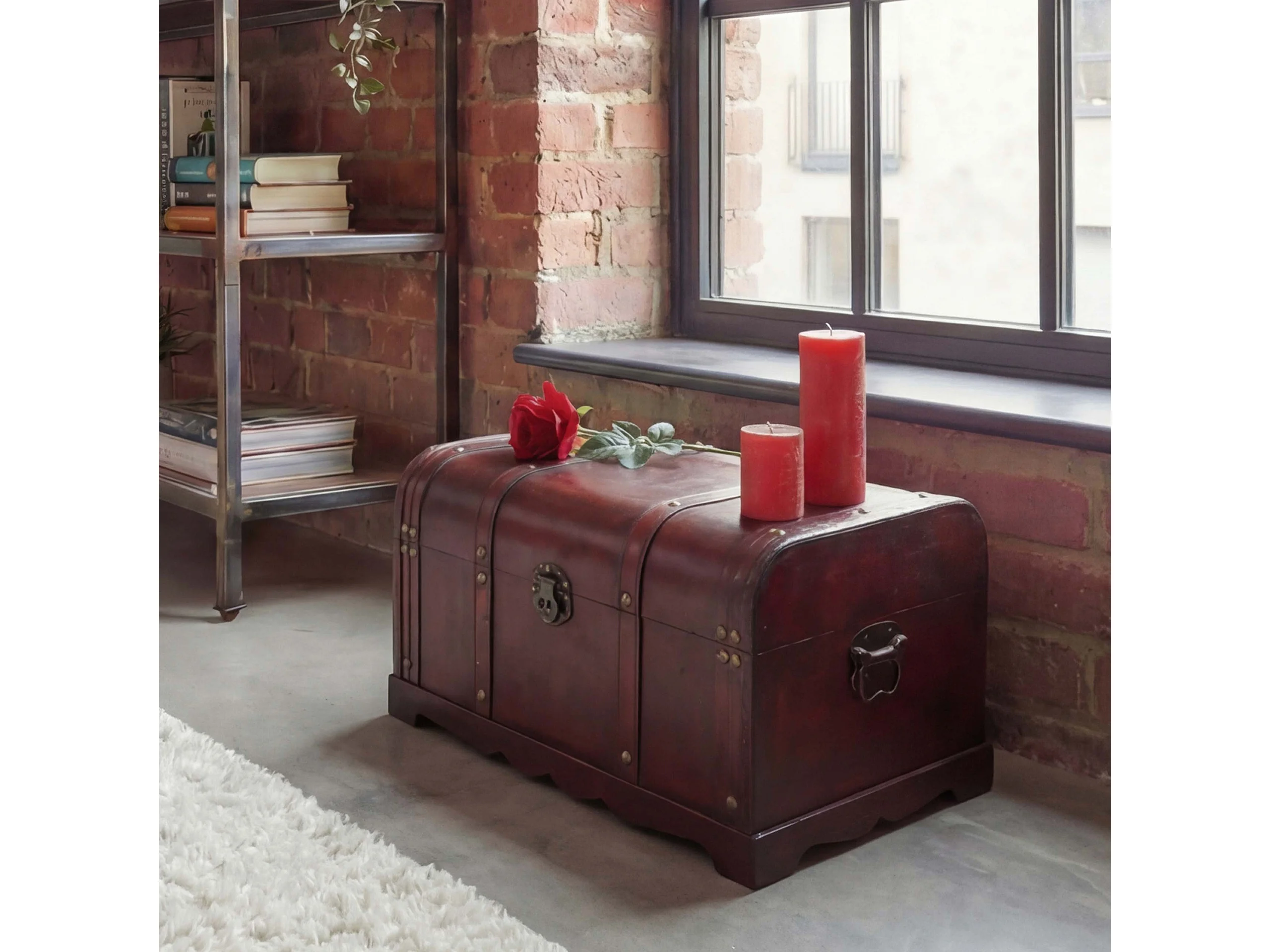 Coffre en manguier rouge vieilli et merisier