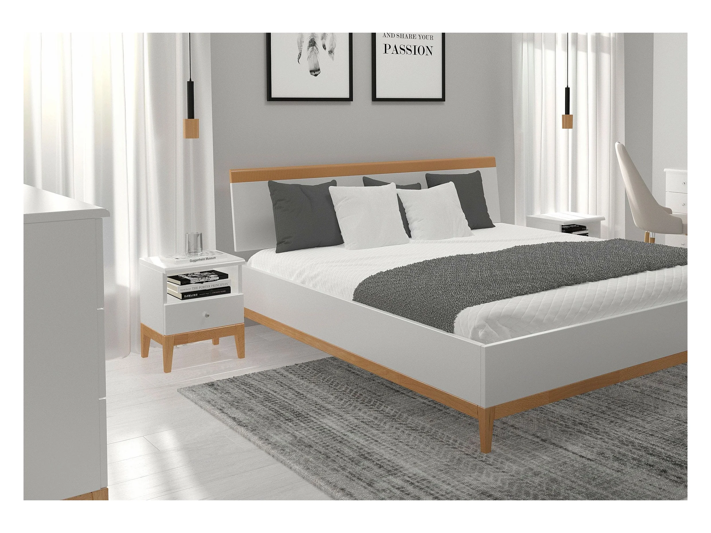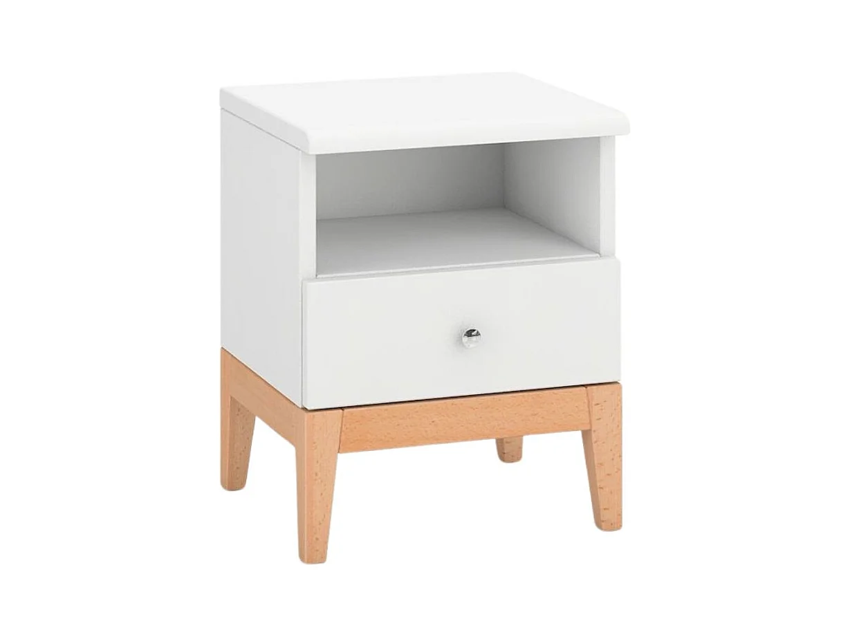 Stolik nocny Baku 2 szuflady biały, lite drewno sosnowe