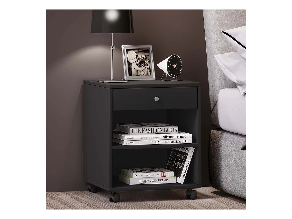 Drewniany stół nocny Rolda kółka szufladowe