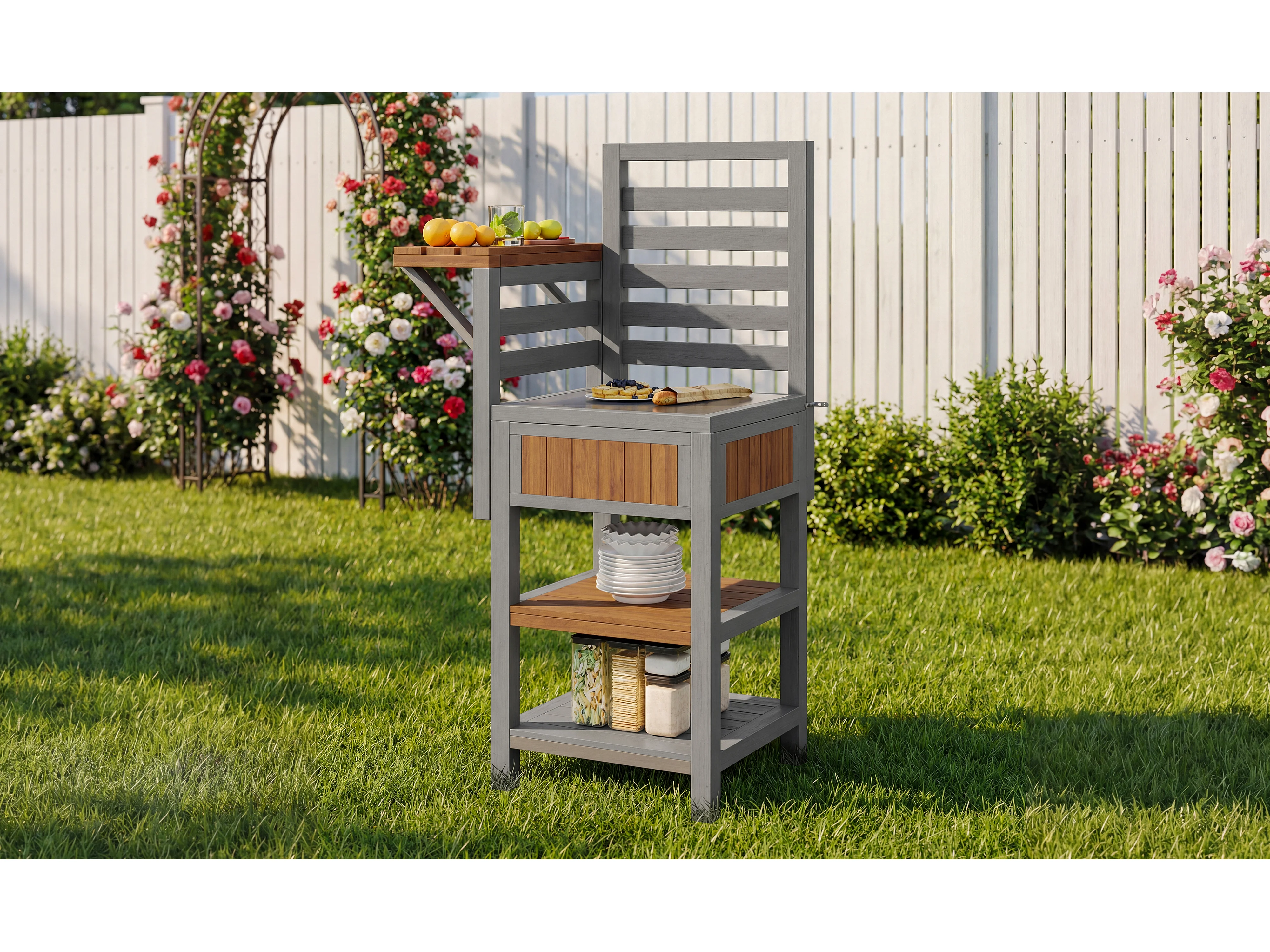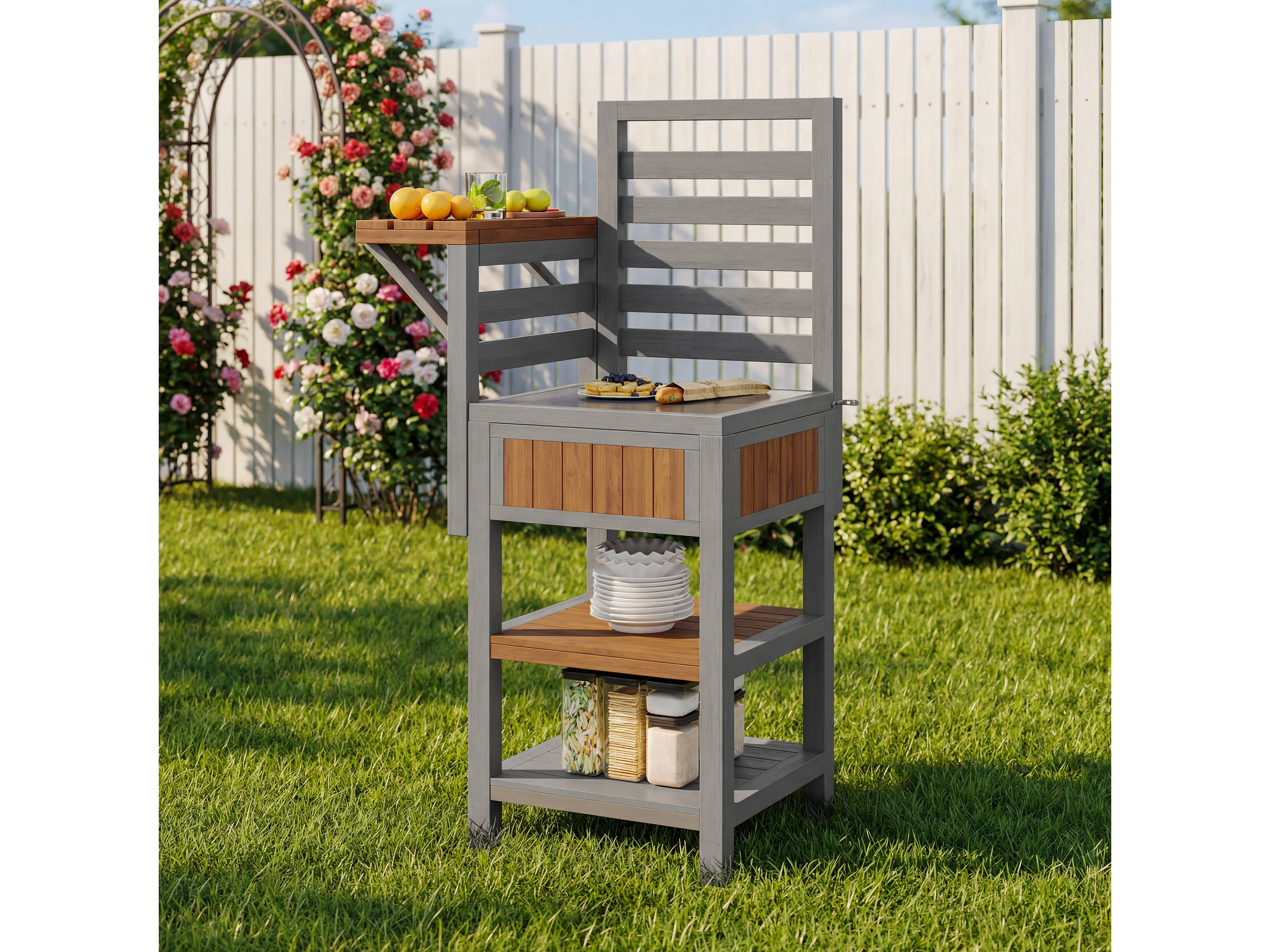 Drewniana szafka ogrodowa - 74 x 54 x 149 cm - z blatem + podwójna półka - naturalna