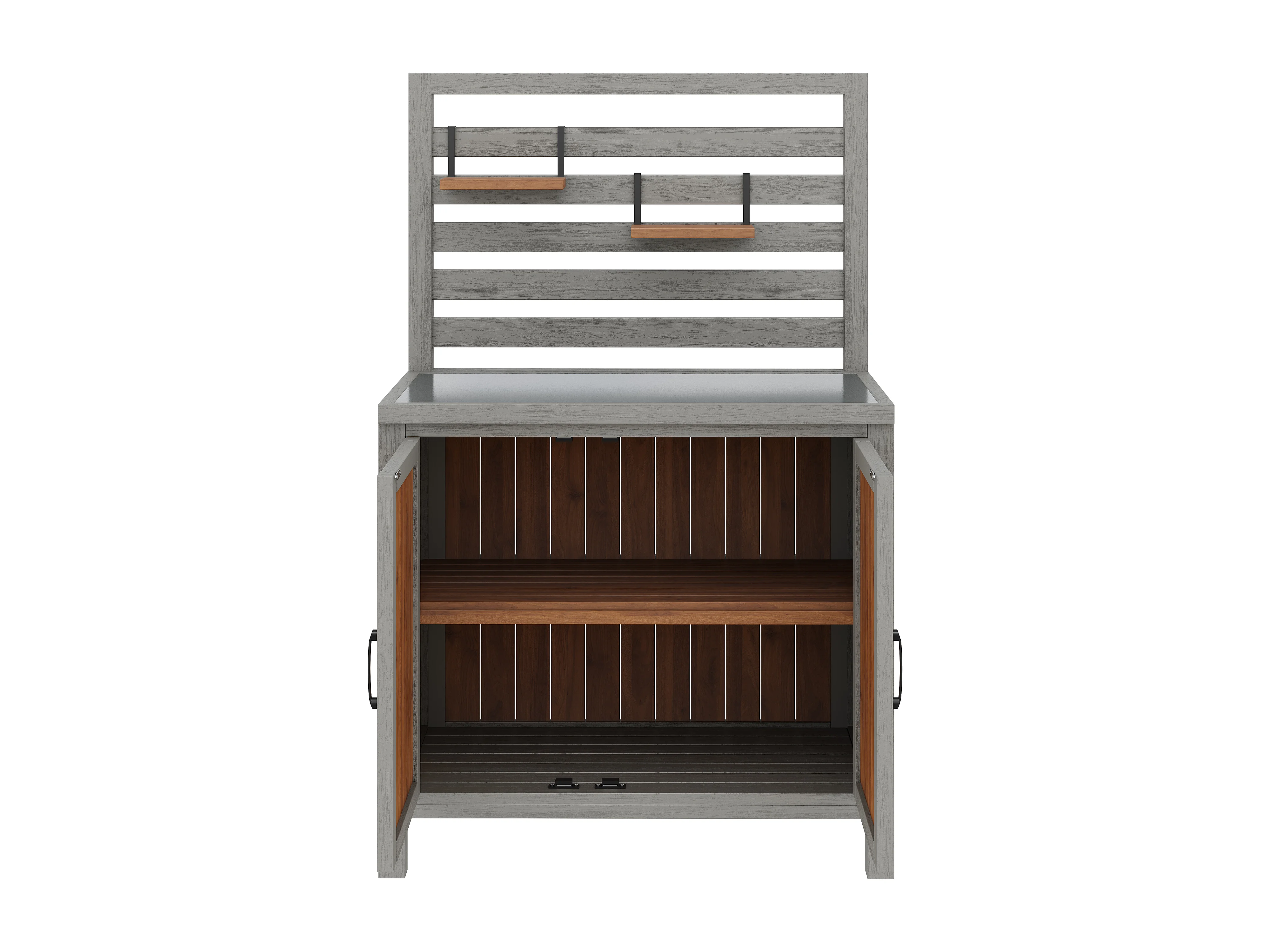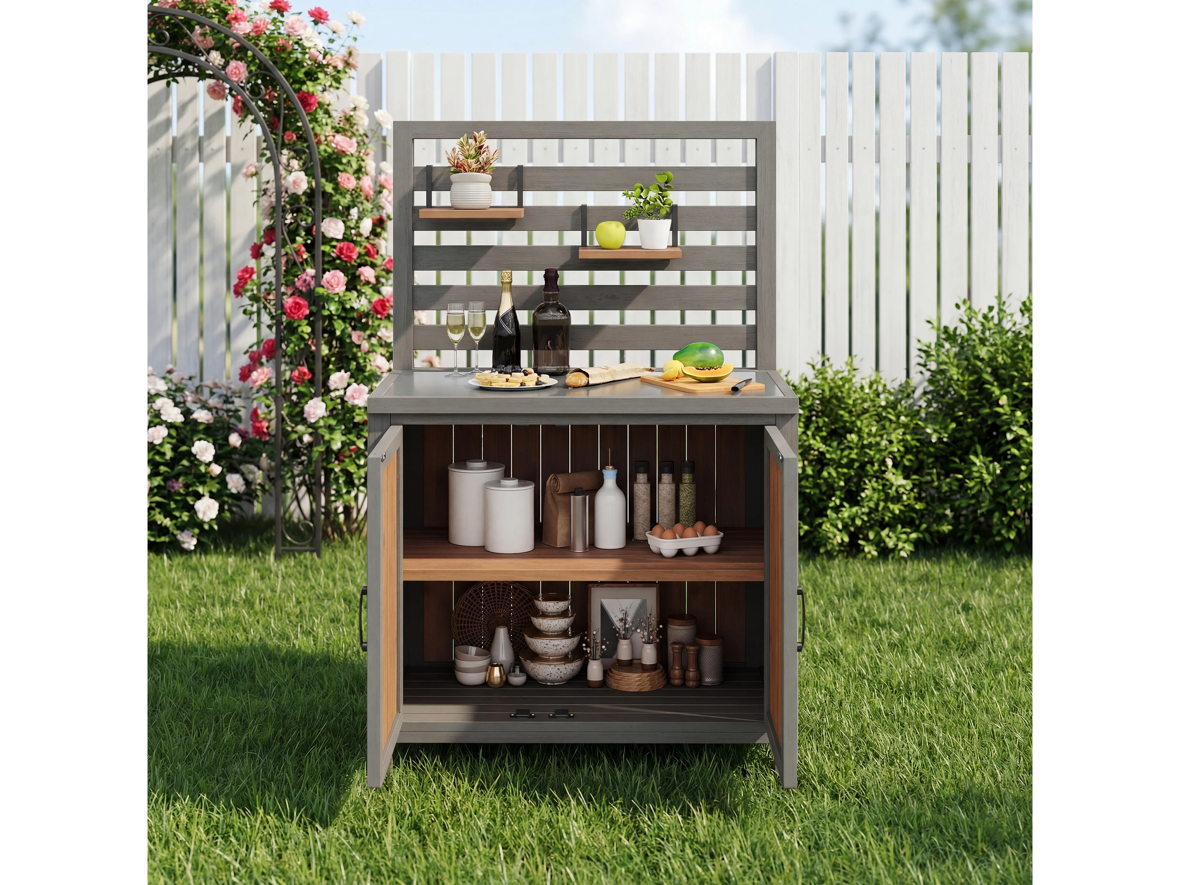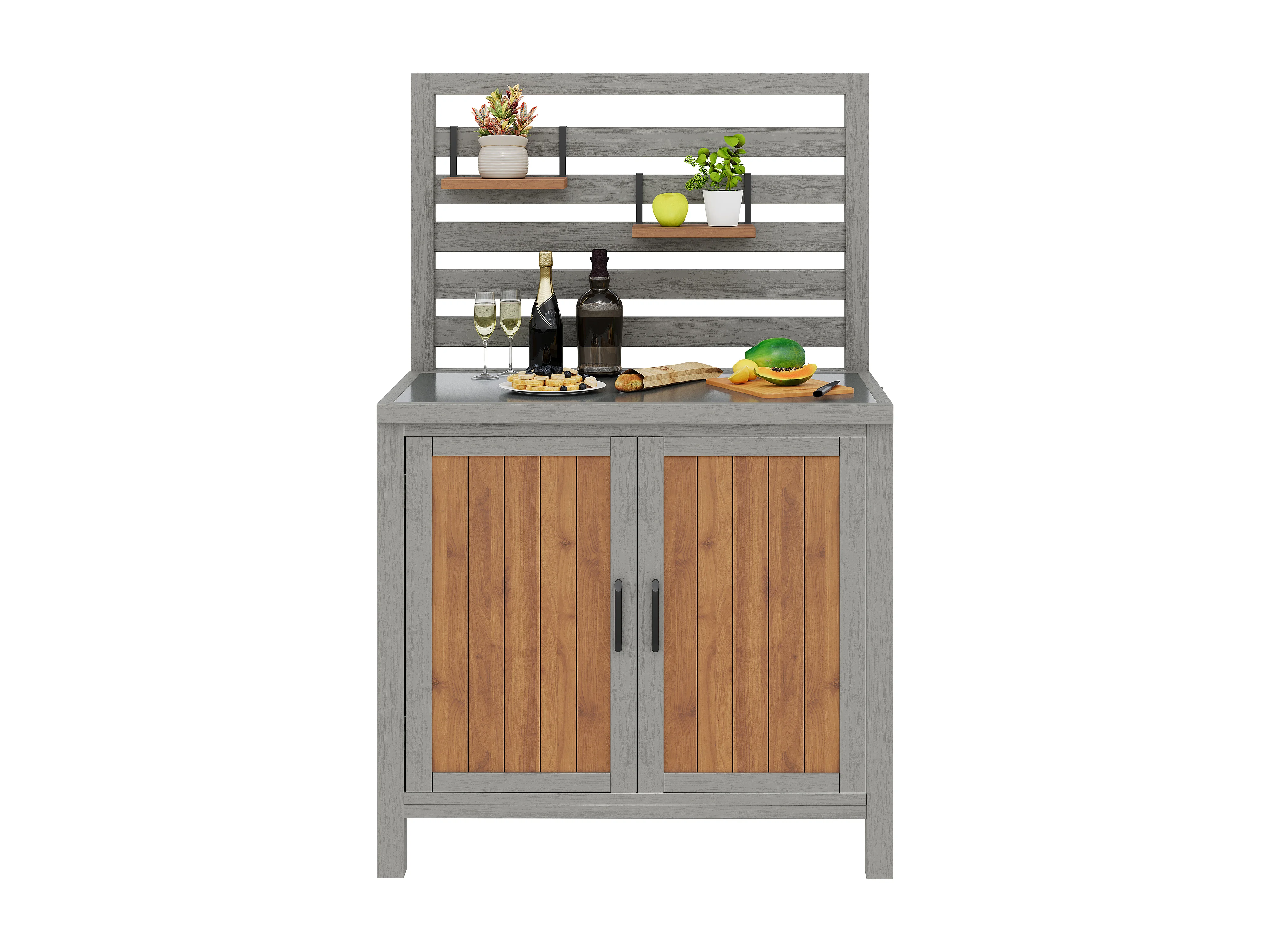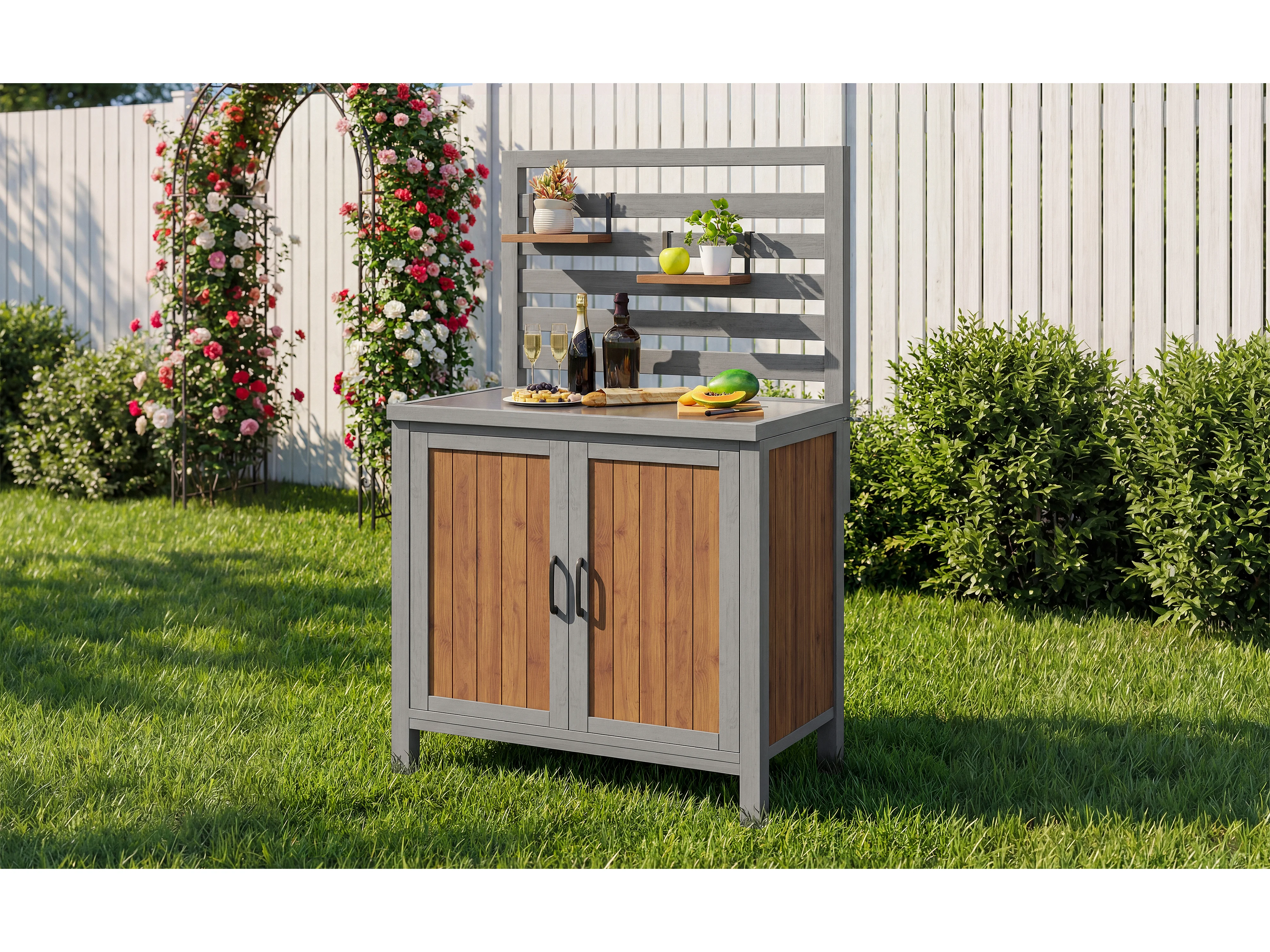 Drewniana szafka ogrodowa - 80 x 51 x 148,5 cm - z blatem + półki + 2 drzwi - naturalna