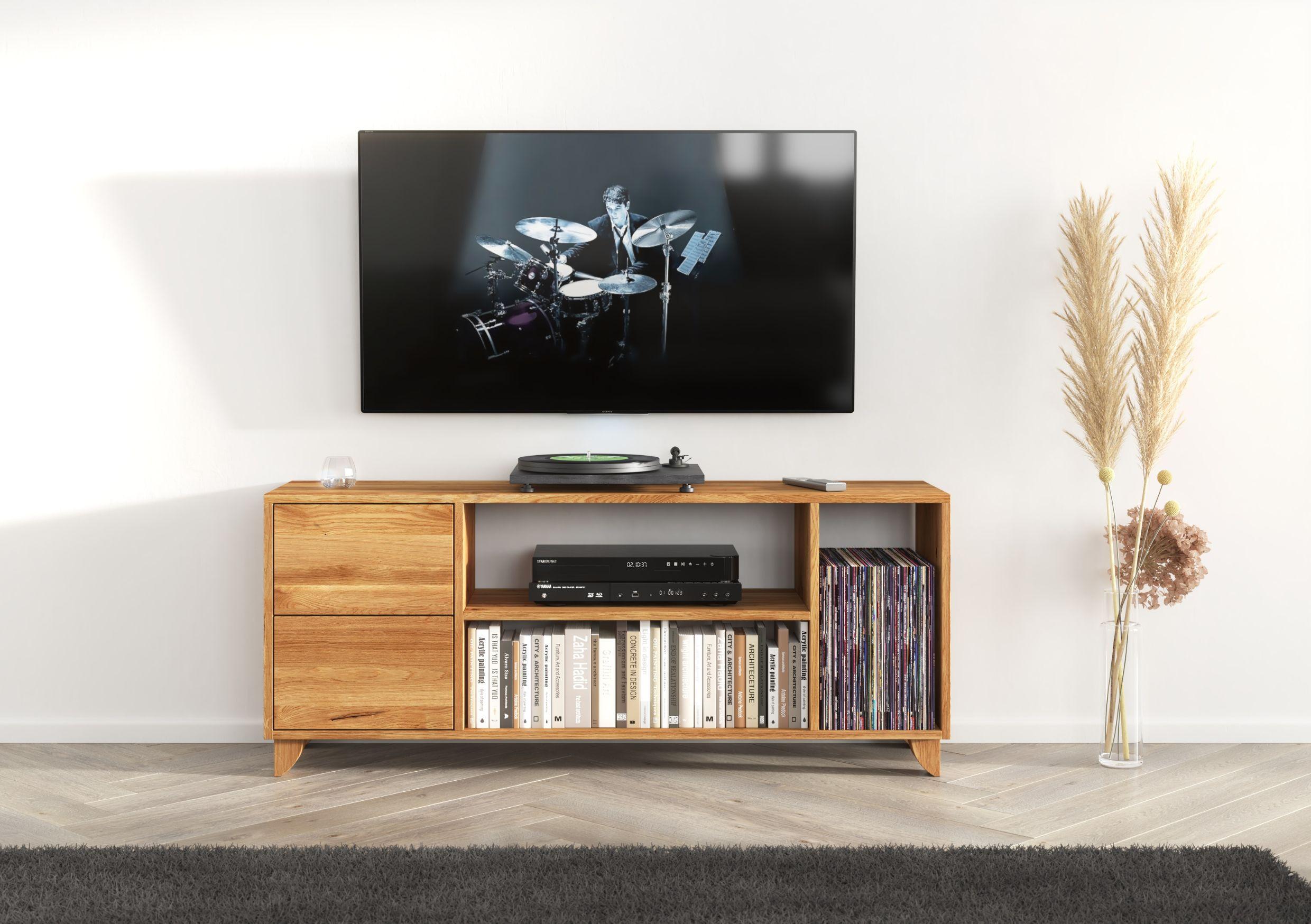 Drewniana szafka Rtv dębowa Viveca na nóżkach/Lakier natural