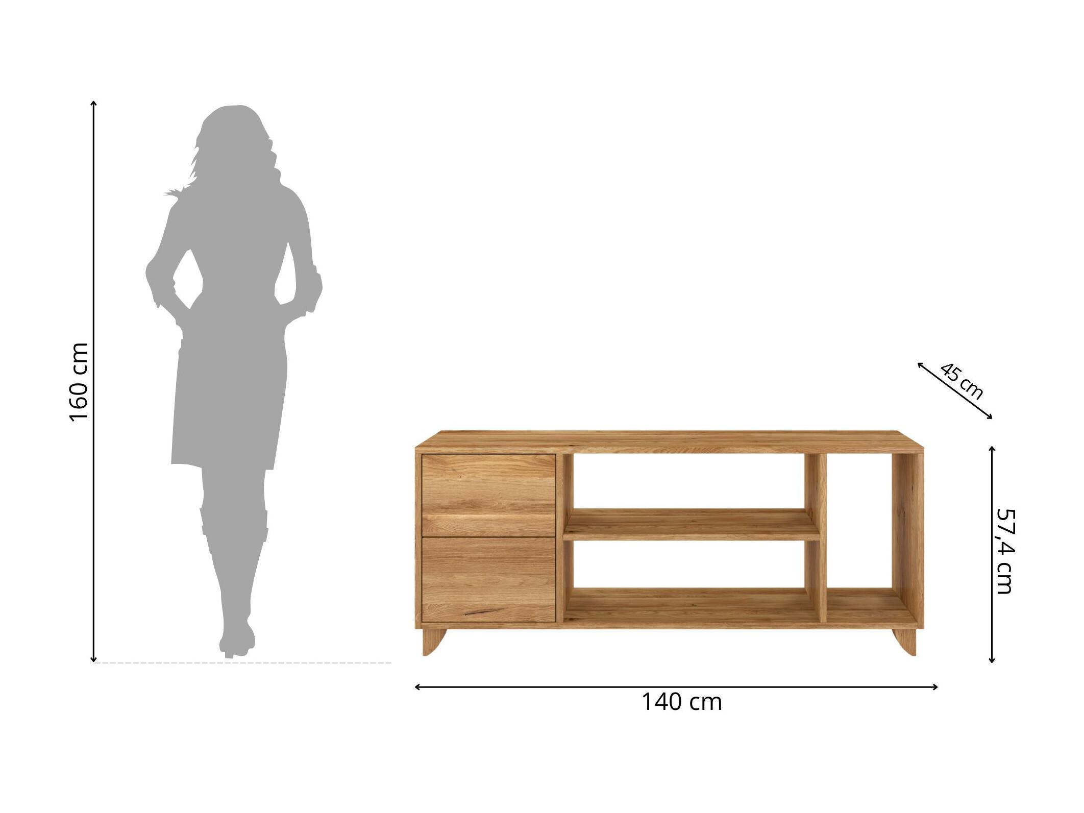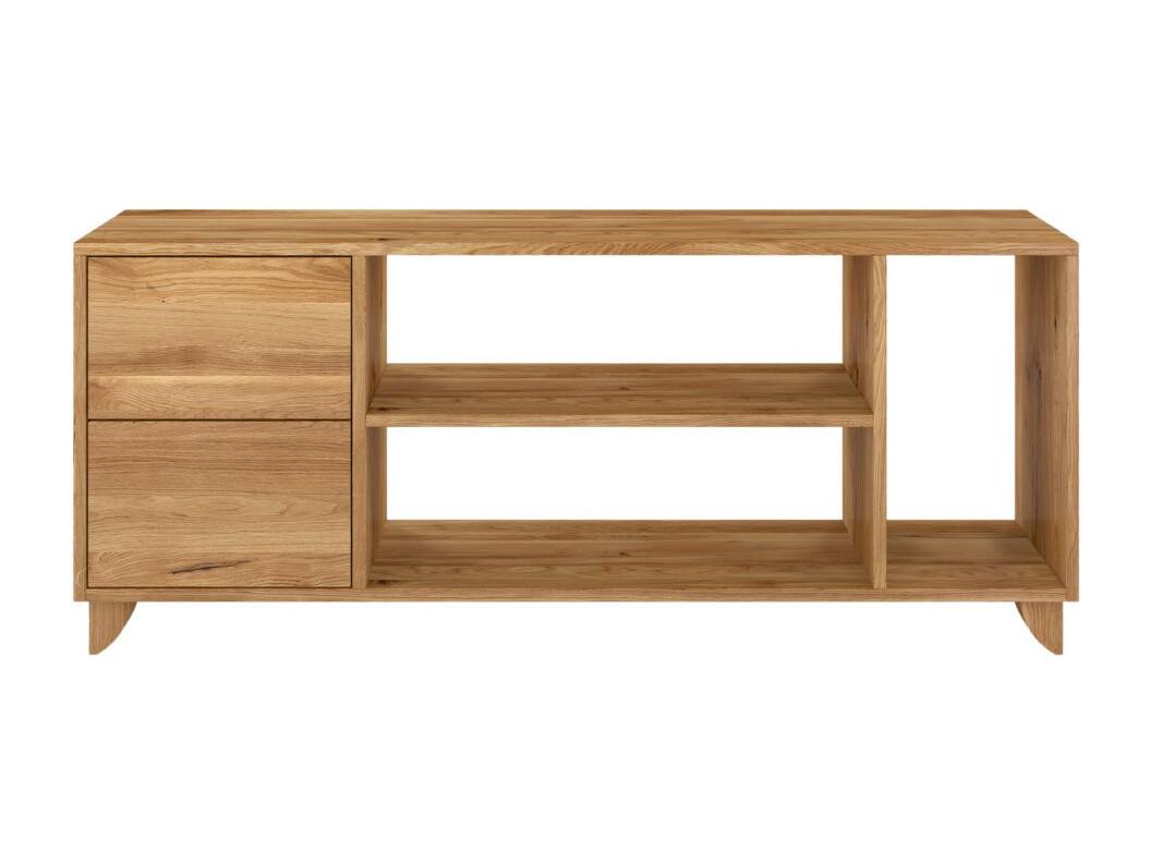 Szafka RTV Visby VIVECA została wykonana z litego drewna dębowego, wyróżniającego się ciepłymi tonacjami oraz wyjątkowym usłojeniem. Całość podtrzymują 4 zgrabne, a przy tym stabilne nóżki wycięte od wewnętrznej strony w łuk. Są one cechą charakterystyczną całej kolekcji Visby VIVECA.