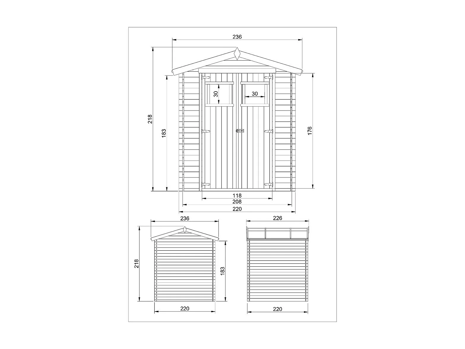 Drewniana szopa ogrodowa - H218 x 236 x 226 cm - 4 m2 - M369C