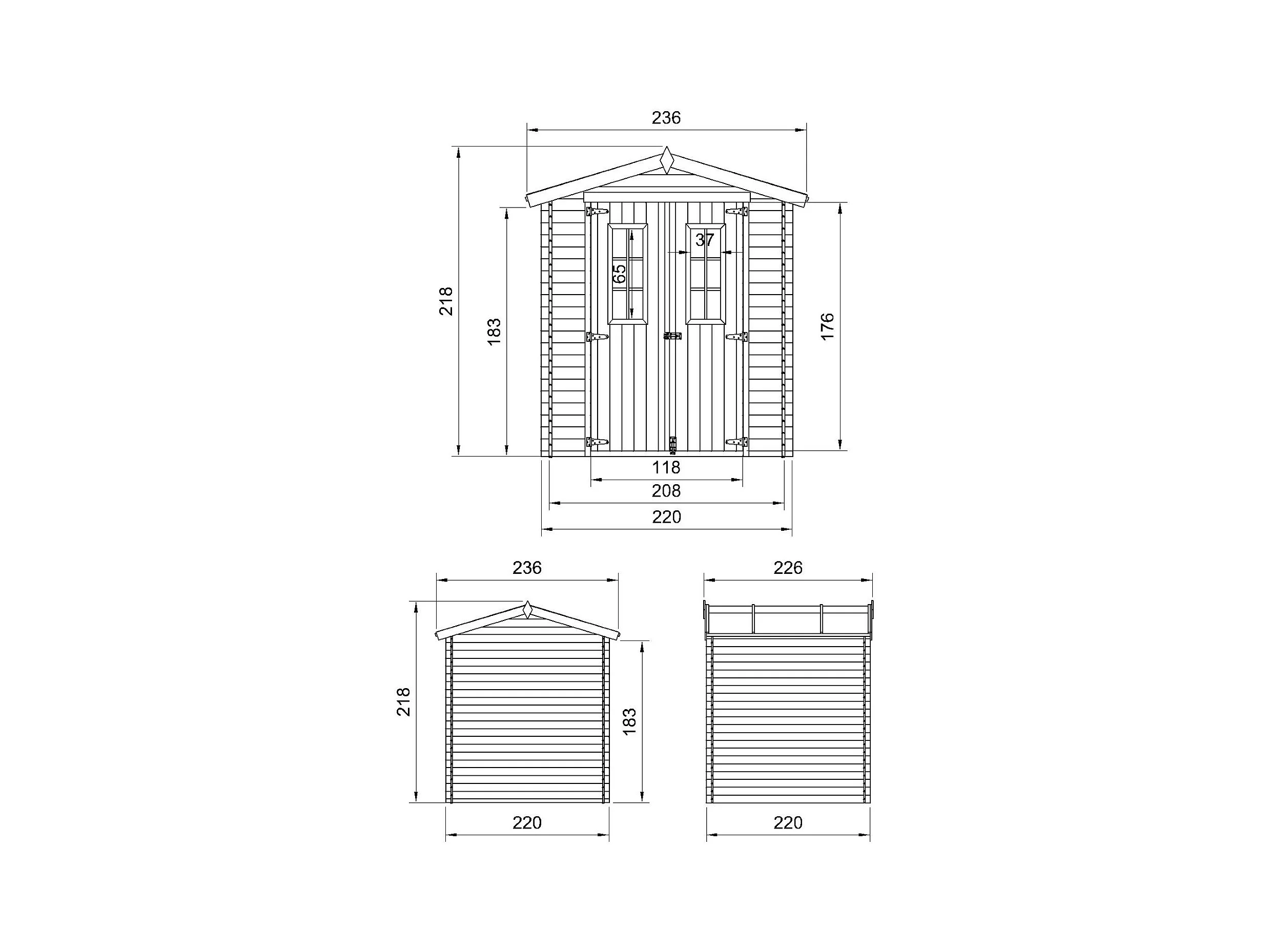 Drewniana Szopa Ogrodowa - H218 x 236 x 226 cm- 4 m2 M369F