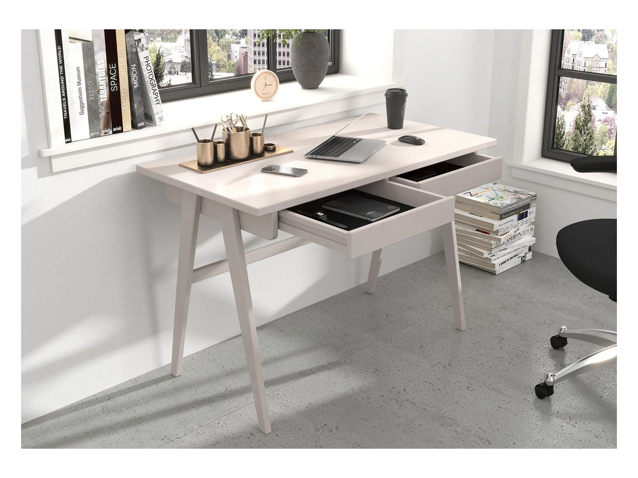 Drewniane bukowe biurko z szufladami Visby LISA / biały RAL