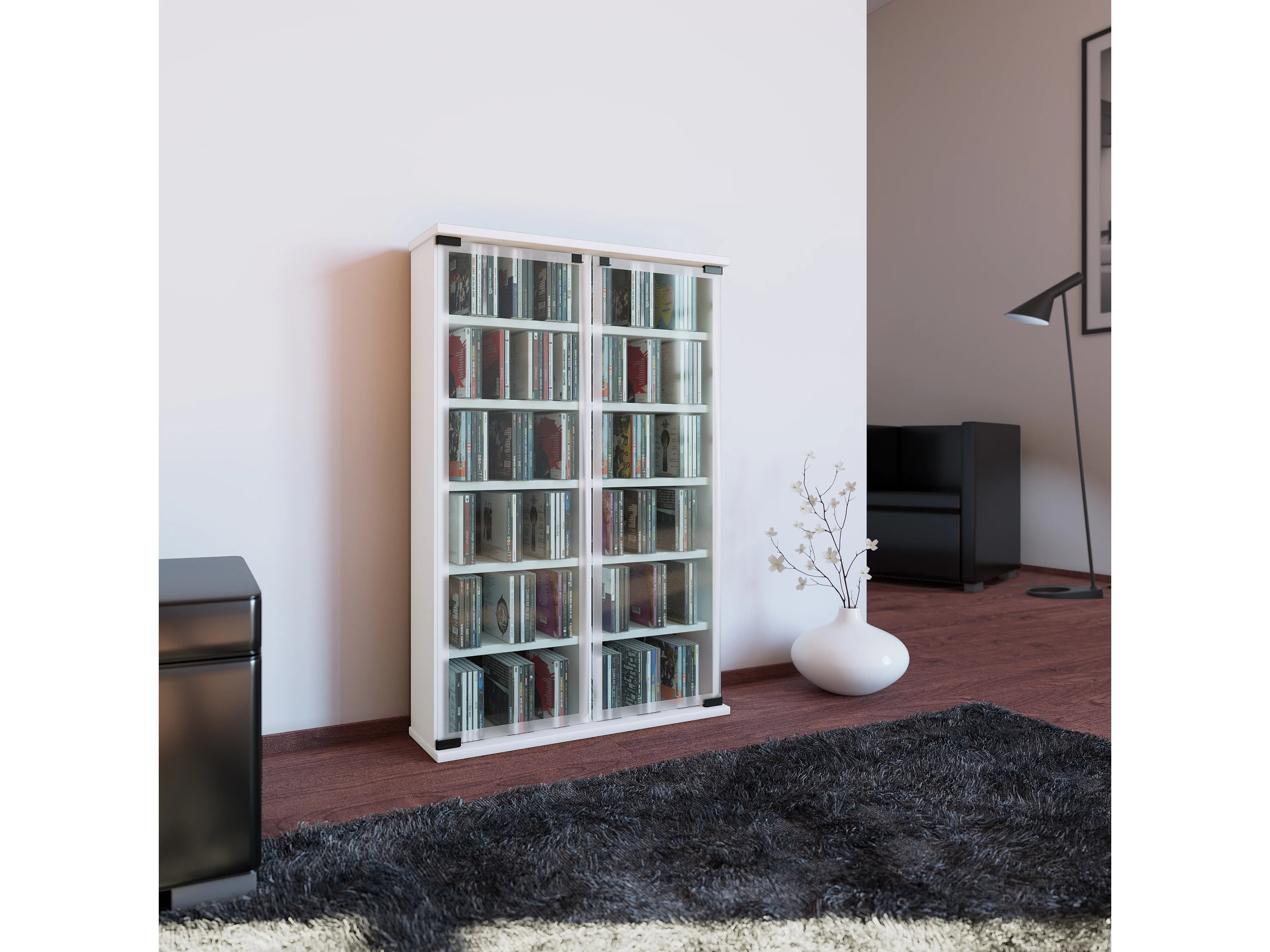 Drewno CD DVD Stand Shelf Gallery Drzwi szklane