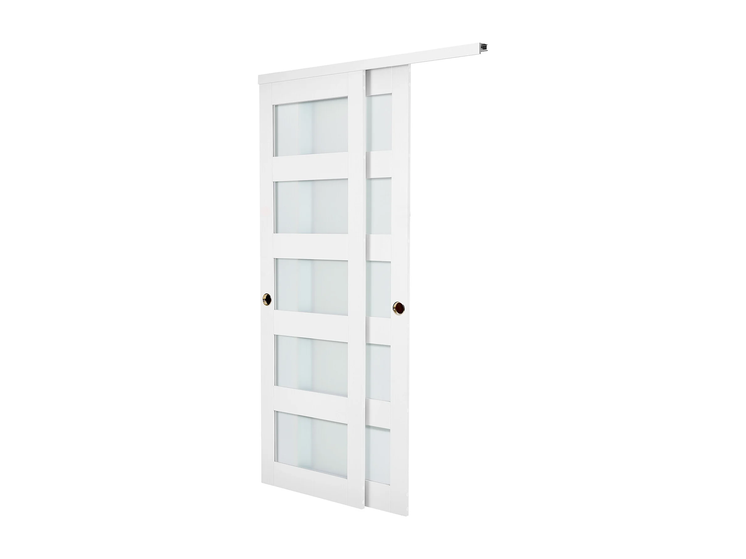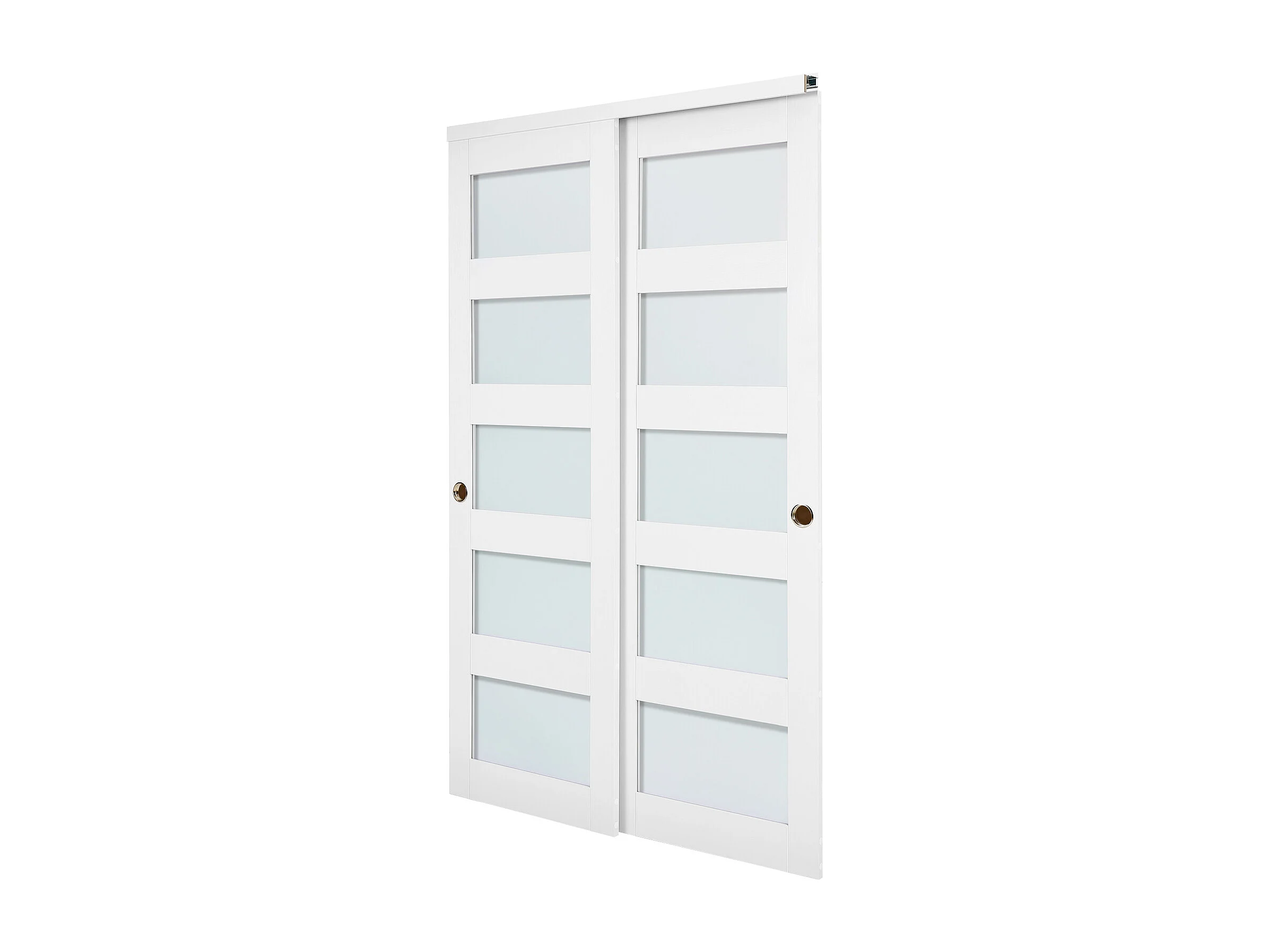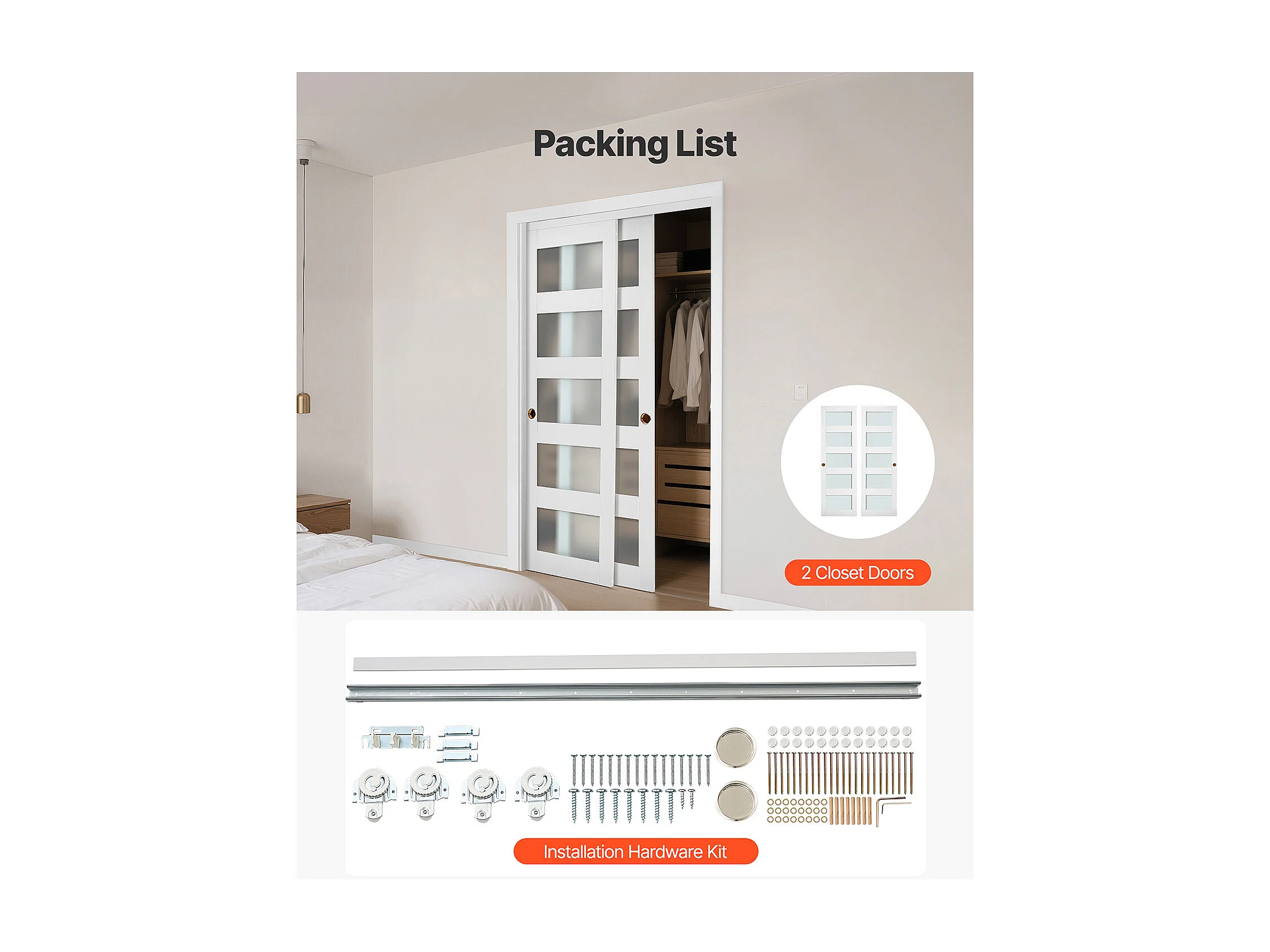 Drzwi Przesuwne SucceBuy do Szafy 121,9 x 203,2 cm, Podwójne Drzwi do Szaf w Szkle Matowym z 5 Panelami, z Kompletem Okuć i Szyną Podłogową