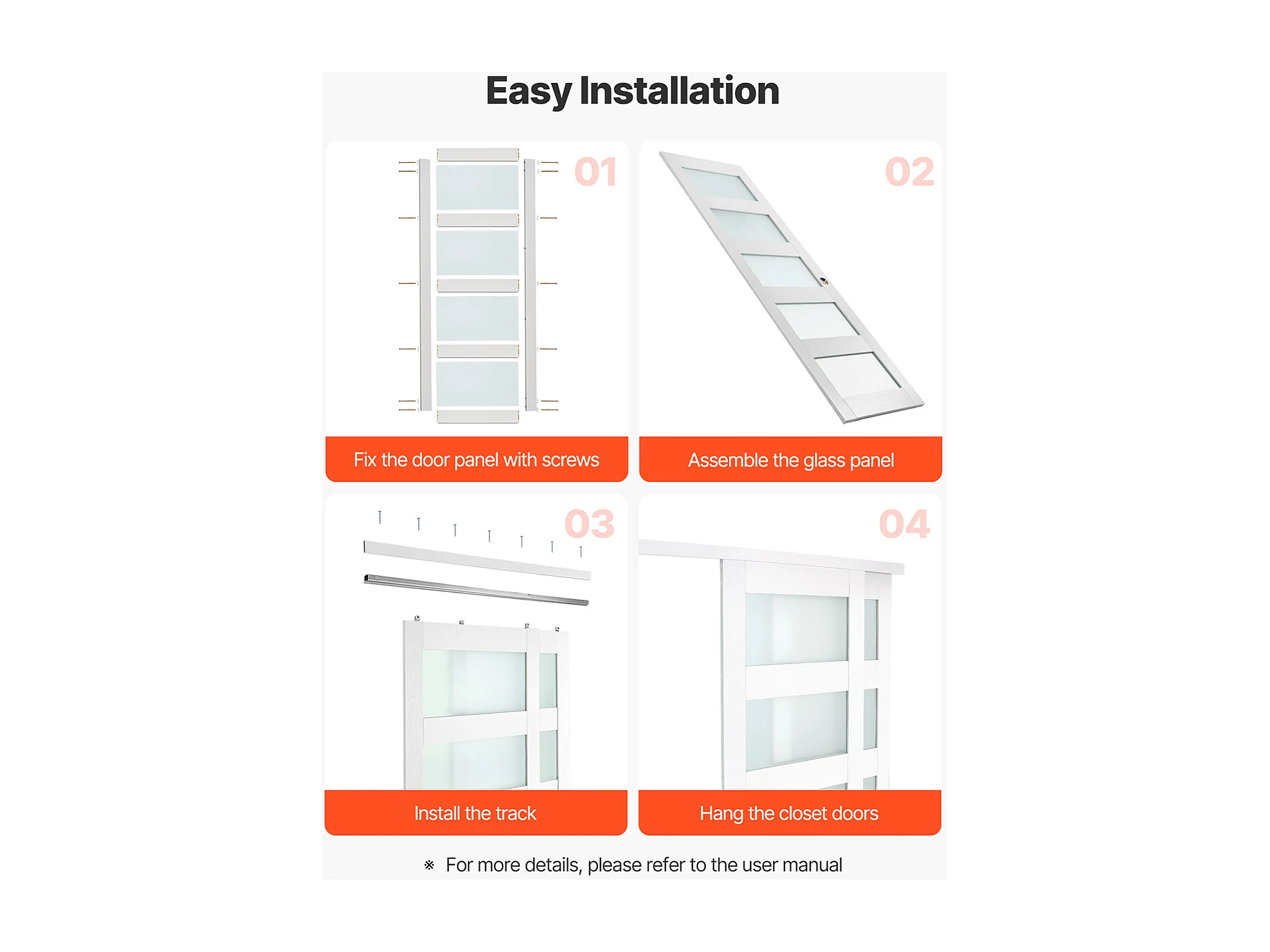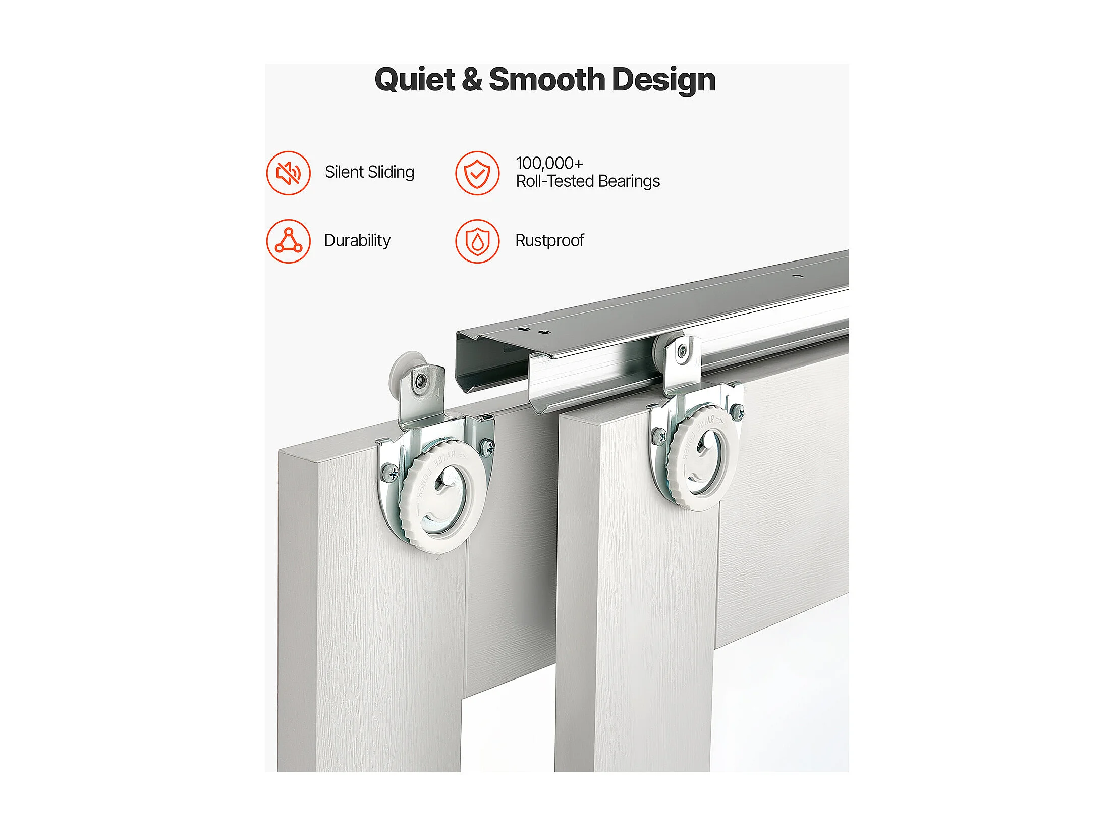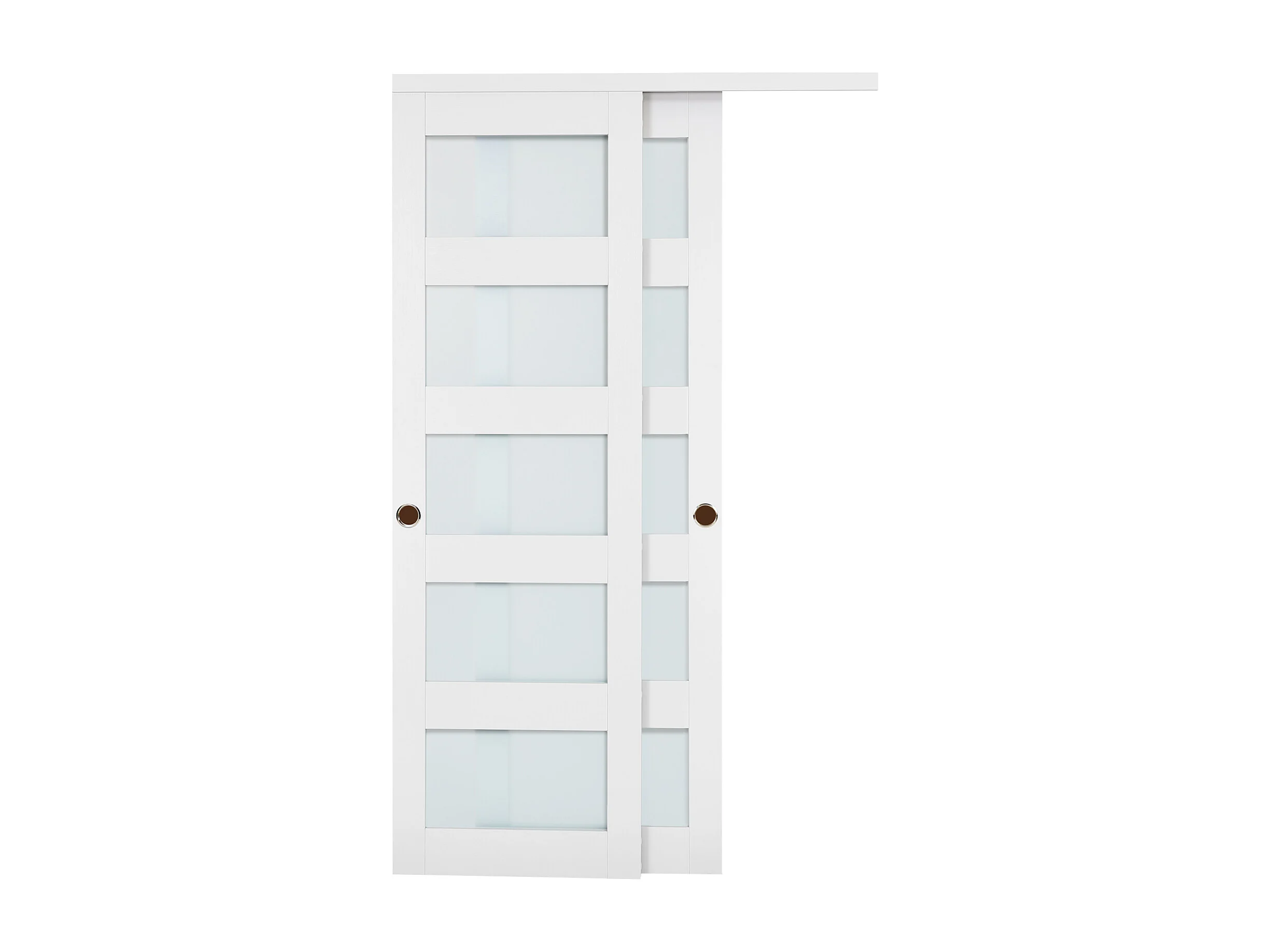 Drzwi Przesuwne SucceBuy do Szafy 121,9 x 203,2 cm, Podwójne Drzwi do Szaf w Szkle Matowym z 5 Panelami, z Kompletem Okuć i Szyną Podłogową